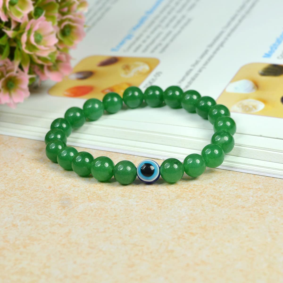 Reiki Crystal Products Evil Eye Bracelet Citrine Rose Quartz Tiger Eye Lava Onyx Quartz Amethyst Bracelet Crystal Stone Reiki Healing Bracelets (Color : Multi)