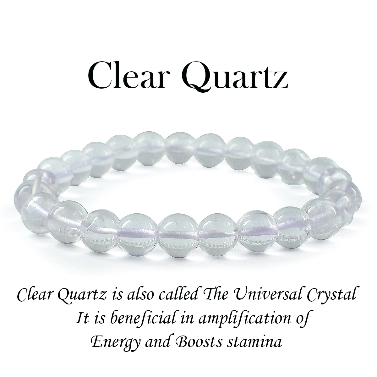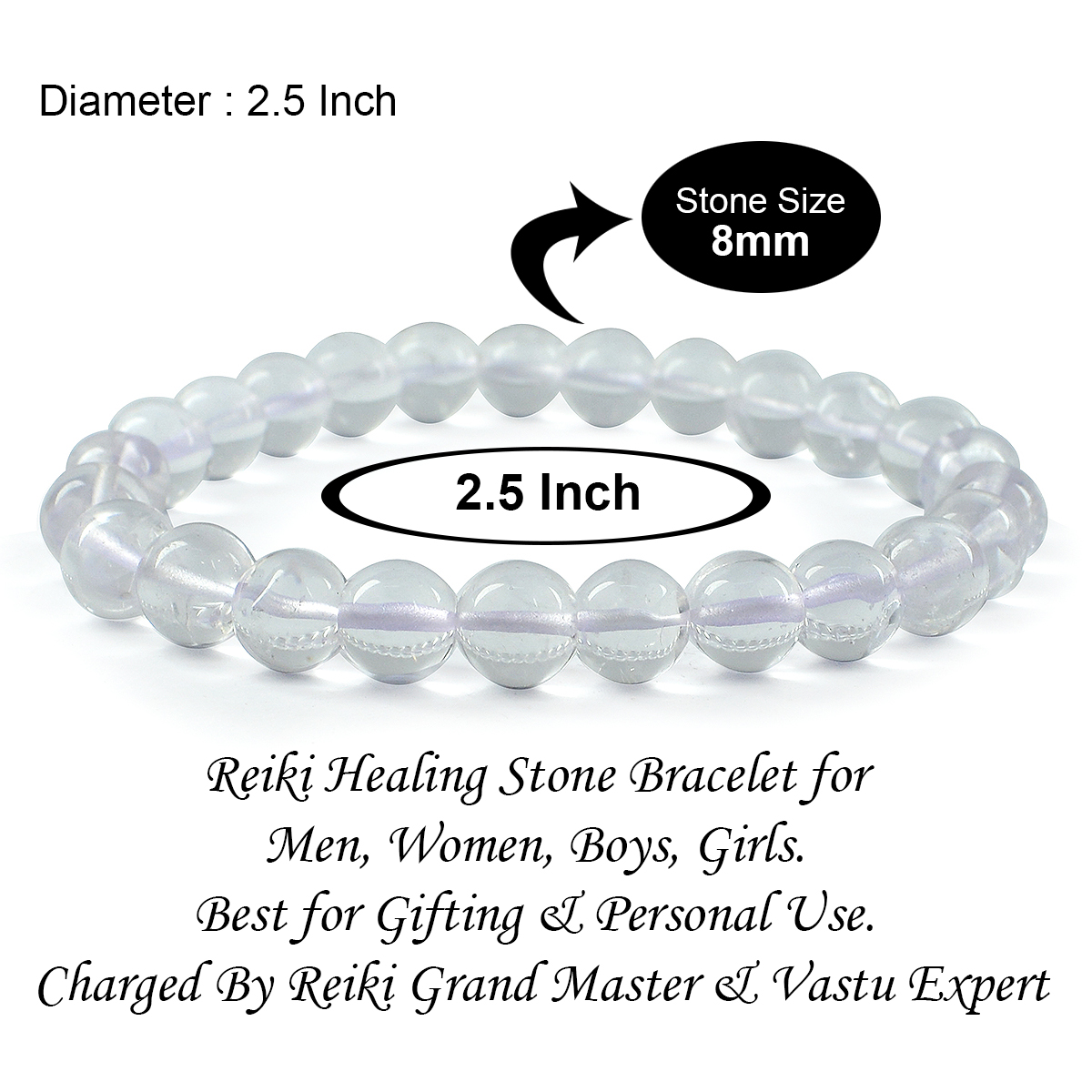 Stretchable Elastic Handmade Natural Crystal Stone Bracelet | Diameter : 2.5 Inch. | Stone Size 8 mm | Shape - Round. Charged By Reiki Grand Master & Vastu Expert