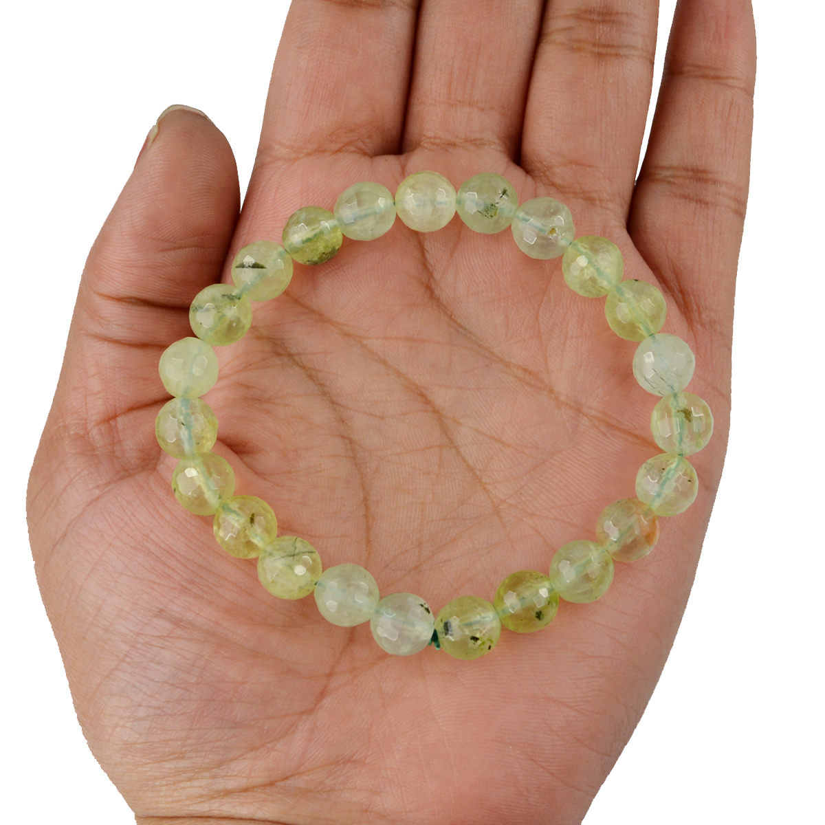 Reiki Crystal Products Natural Phrenite Bracelet Crystal Stone 8mm Faceted Bracelet for Reiki Healing and Crystal Healing Stones