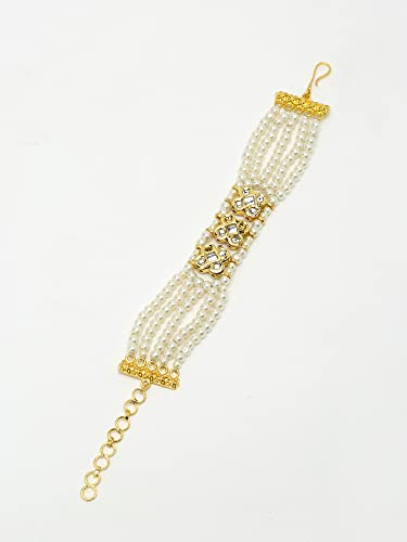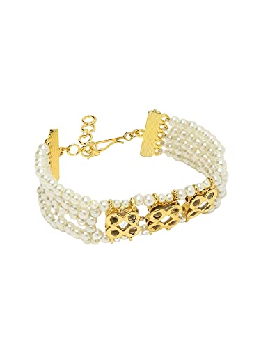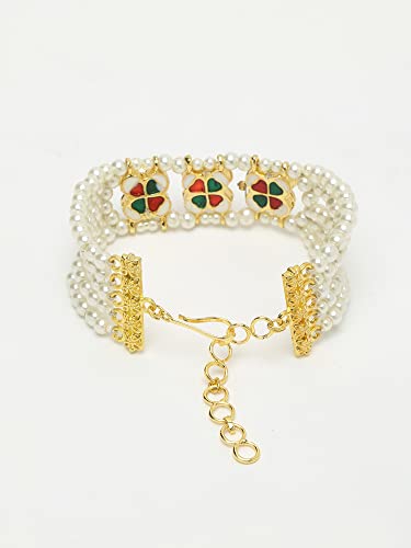 Ruby Raang Women's Mixed Metal Artificial Kundan Bracelets - Traditional Jewellery Set for Women (White)