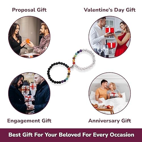BRACELET FOR COUPLES - These matching bracelets include a bell that attracts each other when they are closed representing the eternal love and friendship between couples. Wearing this long-distance touch bracelet for him and her will not let the relationship change no matter how far away. -: PROMISE BRACELET FOR COUPLES - Along with this love bracelet spread a message among your couple that while wearing this couple bracelets for boyfriend and girlfriend no matter how distant our relationship is we will remember each other's promises and deep love. -: PREMIUM QUALITY & ADJUSTABLE SIZE- The premium quality of 8mm natural stone and adjustable size of this couple bracelet for him and her makes it durable and not easily breakable which ensures a long time usage. Suitable for any wrist. -: SPECIAL JEWELRY GIFT - This love bracelet for couples matching bracelets can be a wonderful gift for him and her for your husband wife boyfriend or girlfriend. Especially suitable for Christmas Valentine's Day Engagement Thanksgiving's Day Wedding. A perfect gift for long distance relationship -:MONEY BACK GUARANTEE - At Crystal Vibe we don't compromise at providing the best quality product and ensures timely and effective customer service. We offer a money back guarantee if you are not satisfied with the product you can reach us for a full refund.