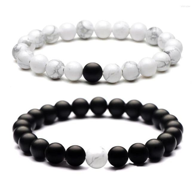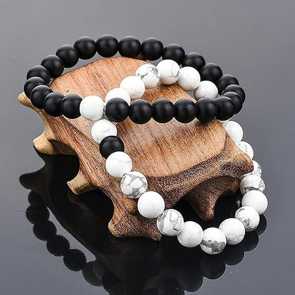 Sukhad Couple Bracelet Fashion Distance Natural Stones Reiki Yoga Healing Unisex Bracelet for Men and Women Black And White Stretchable Handmade Bracelets | Wrist fit Size | Stone Size - 8Mm | Stylish Daily/Party/Office/Casual Wear Healing Accessories For Men/Women/Boys/Girls. Best For Gifting & Personal Use.