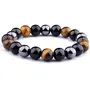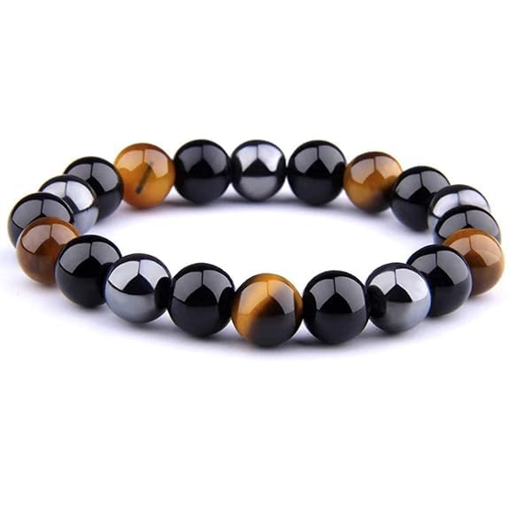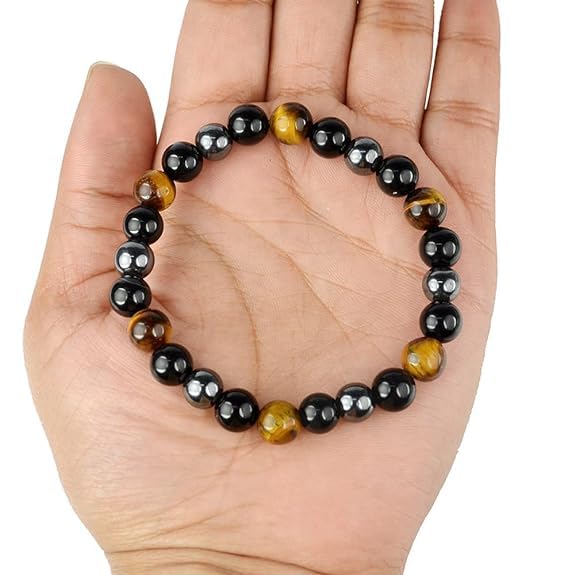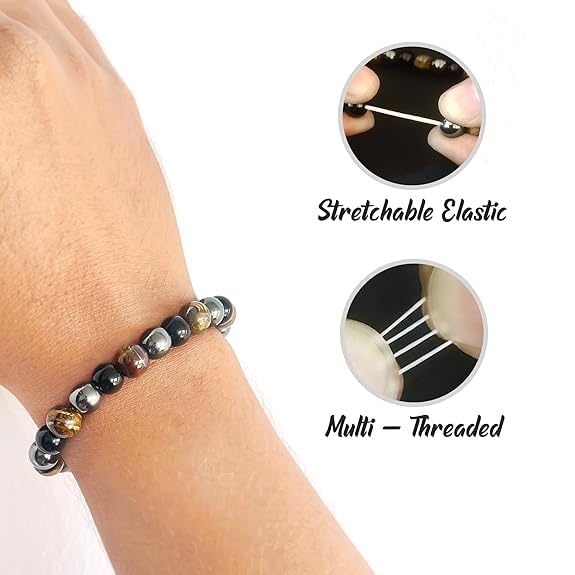 Tiger Eye Benefits:- A stone of insurance Tiger's Eye may likewise carry best of luck to the wearer. It has the ability to concentrate the brain advancing mental clearness helping us to determine issues unbiasedly and unclouded by feelings. Especially helpful for recuperating psychosomatic ailments scattering trepidation and uneasiness. Black Tourmaline Benefits:- Black Tourmaline is a stone for best of luck thus substantially more. It's a strong and fortunate stone that when scoured produces an attractive power which will heighten and your best of luck will be enhanced. Hematite Stone Benefits:- The Hematite Helps you to Balance your Chakra Balance your Body Energies Help to Come over from the stress and Negativity Help to Calm the Mind and Enhance Creativity. The Best part of this Bracelet is that all the above benefits of 3 Different Stones you will get in one thats why we called it a Triple Protection Bracelet.