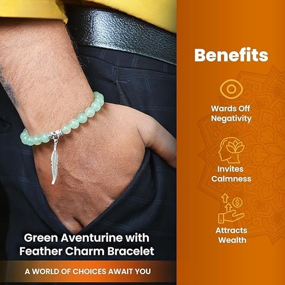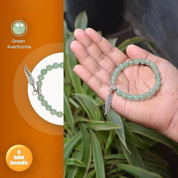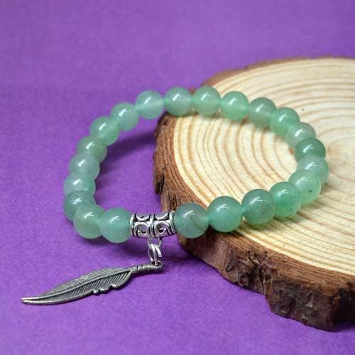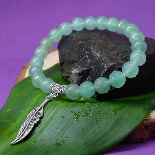 Sukhad Green Aventurine & Feather Charm Bracelet Men & Women 8-MM Stone - Energy Charged Good Health Wealth-Prosperity. Seetara provides uique gemstones and other stones Enegry Infused malafashionable jewelleryBracelet and many more for our customers which can be worn at any time and anywhere. We have handcrafted bracelets home decormala necklaces and other products in our Seetara store. Please come to our shop to choose more fashion jewellery other home decor items or Genergy infused gems. Our quality gemstone beaded bracelets are made with over 60 different gemstones in 600+ styles. Our gemstone beads are hand-selected and double strung with the highest quality elastic available. Our products make the perfect gift for your loved ones on many special days: New Year Mother's Day Father's Day Christmas and Birthday Pooja and Chanting.