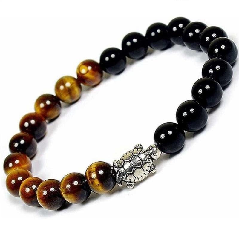 Stretchable Elastic Handmade Tiger Eye with Black Tourmaline Bracelet | Diameter: 7.5 inches. Stone Size - 8 mm | Shape - Reiki Healing Crystal Healing Numerology Tarot Astrology & Feng Shui Natural Tiger Eye Black Tourmaline Healing Stone / Crystal with Black Tourmaline Healing Stone / Crystal - Small holes cracks on the surface or inside the stones. Marks are often visible Material: Natural Healing Stones Tiger Eye with Black Tourmaline View Images & Product Description Healing Properties/Benefits Stylish Party-Daily-Office-Casual Wear Reiki Healing Stone Bracelet for Men Women Boys Girls . Best for gifting and personal use. Charged by Reiki Grand Master and Vastu Expert Made with high-quality tiger eye and black tourmaline beads this bracelet is both stylish and meaningful. The tiger eye beads are a beautiful brown color with a chatoyant sheen while the black tourmaline beads add a touch of sophistication. The turtle charm is made of a silver-colored metal and features intricate details. This bracelet is sure to become a cherished favorite.
