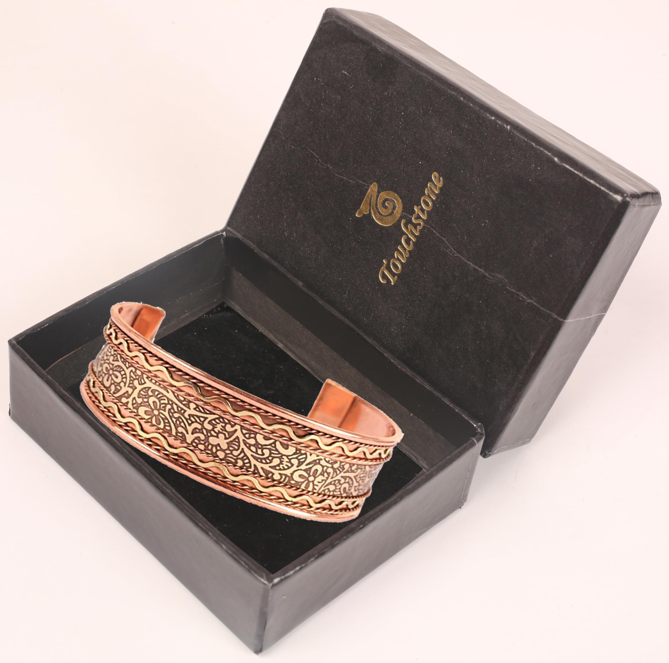 HomeFashionBraceletTouchstone Copper Healing Bracelet Tibetan Style. Hand Forged With Solid And High Gauge Pure Copper. Beautiful Embossed Design For Women
