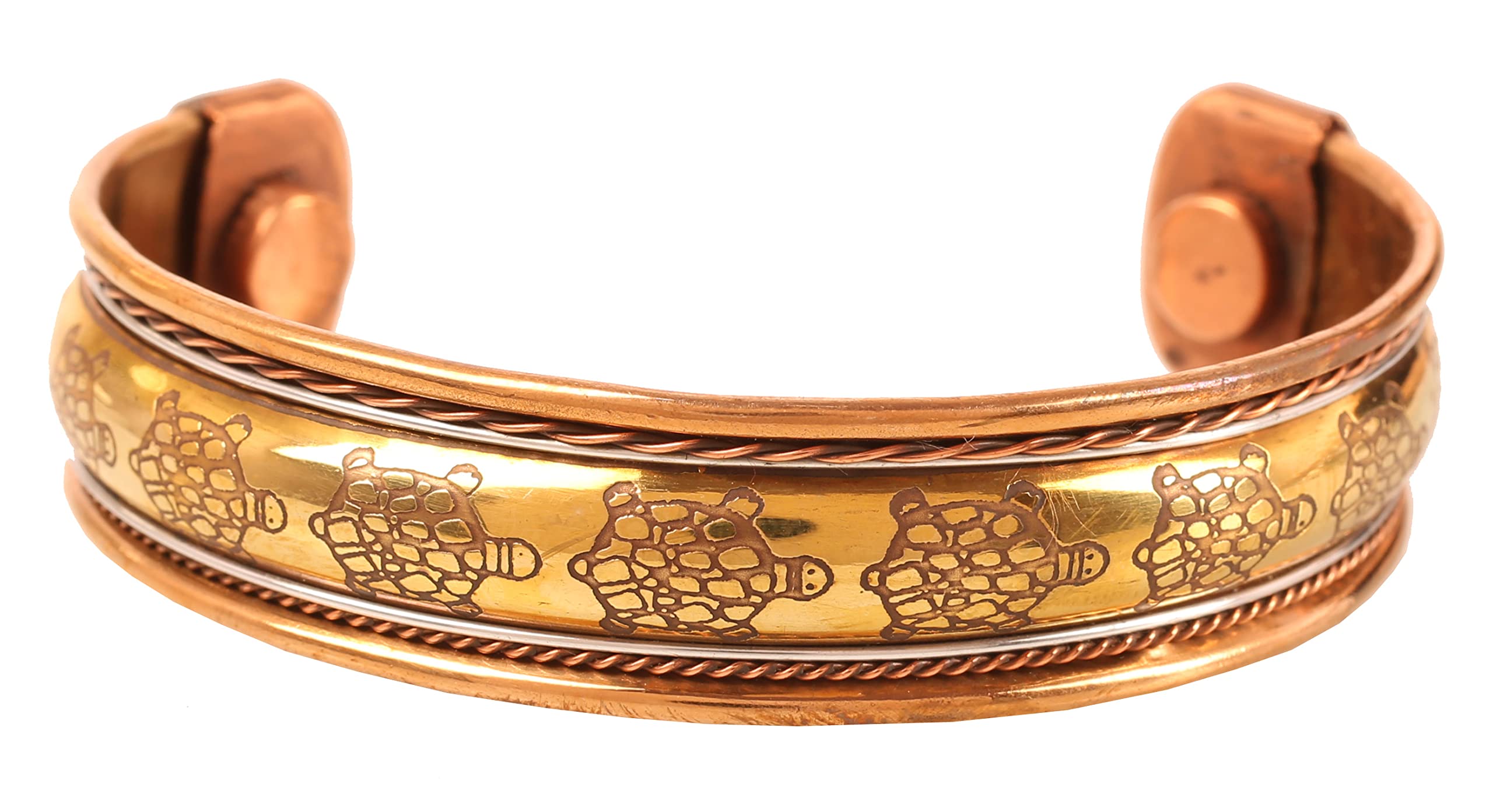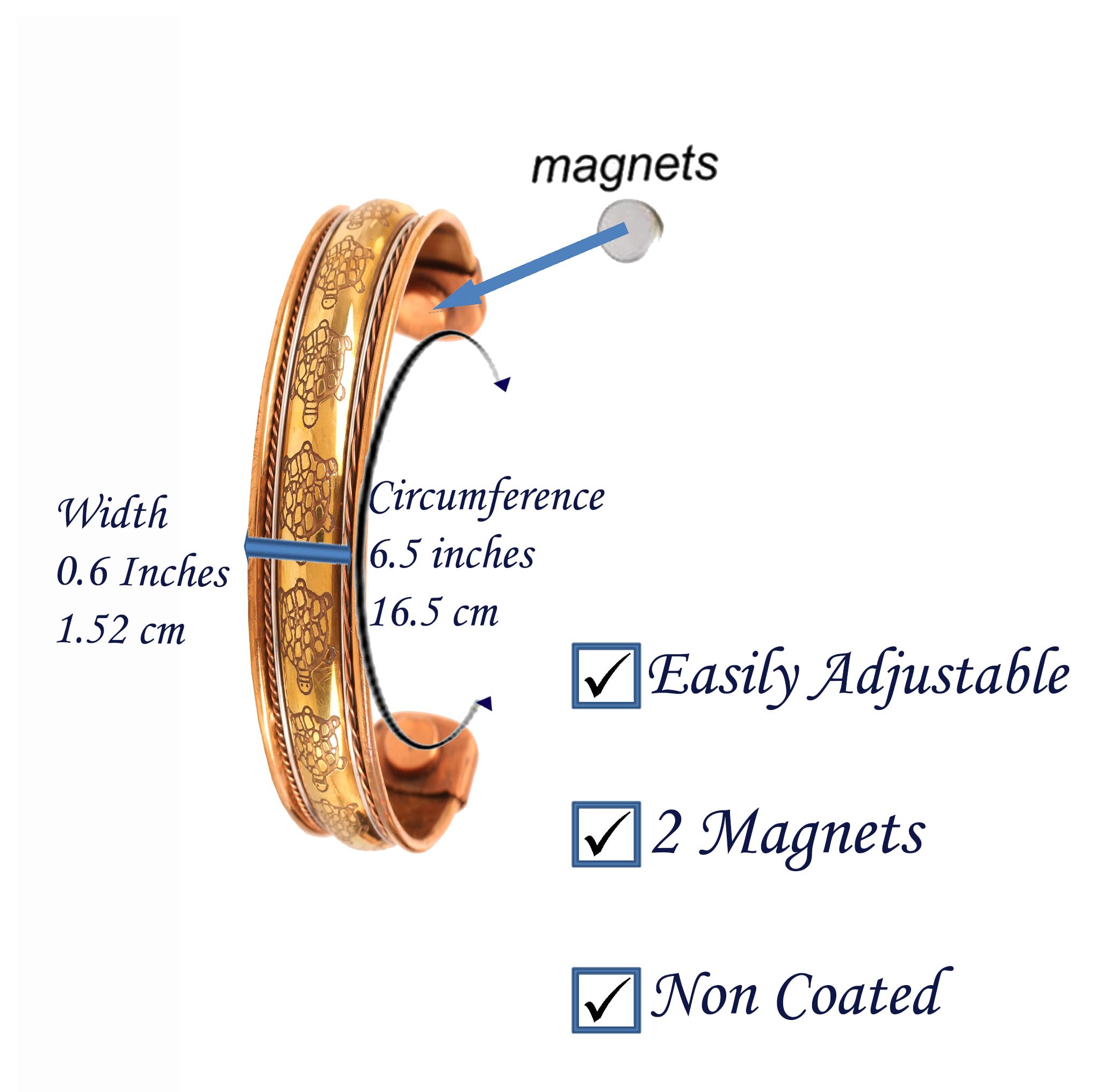 Touchstone handcrafted magnetic copper bracelet. Hand forged with solid and high gauge Tibetan style engraved cuff pure copper jewelry for women men. Tortoise Inspired