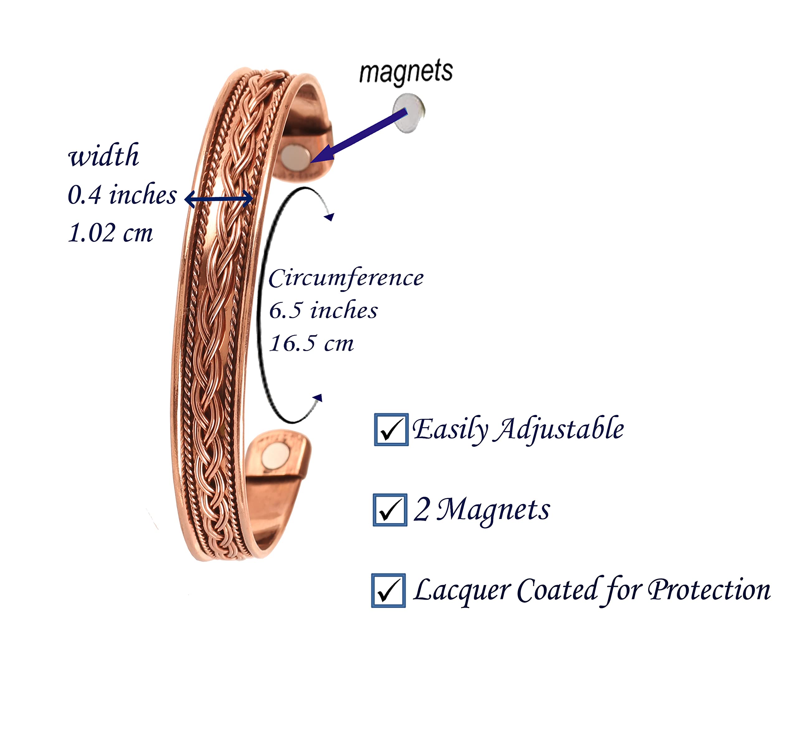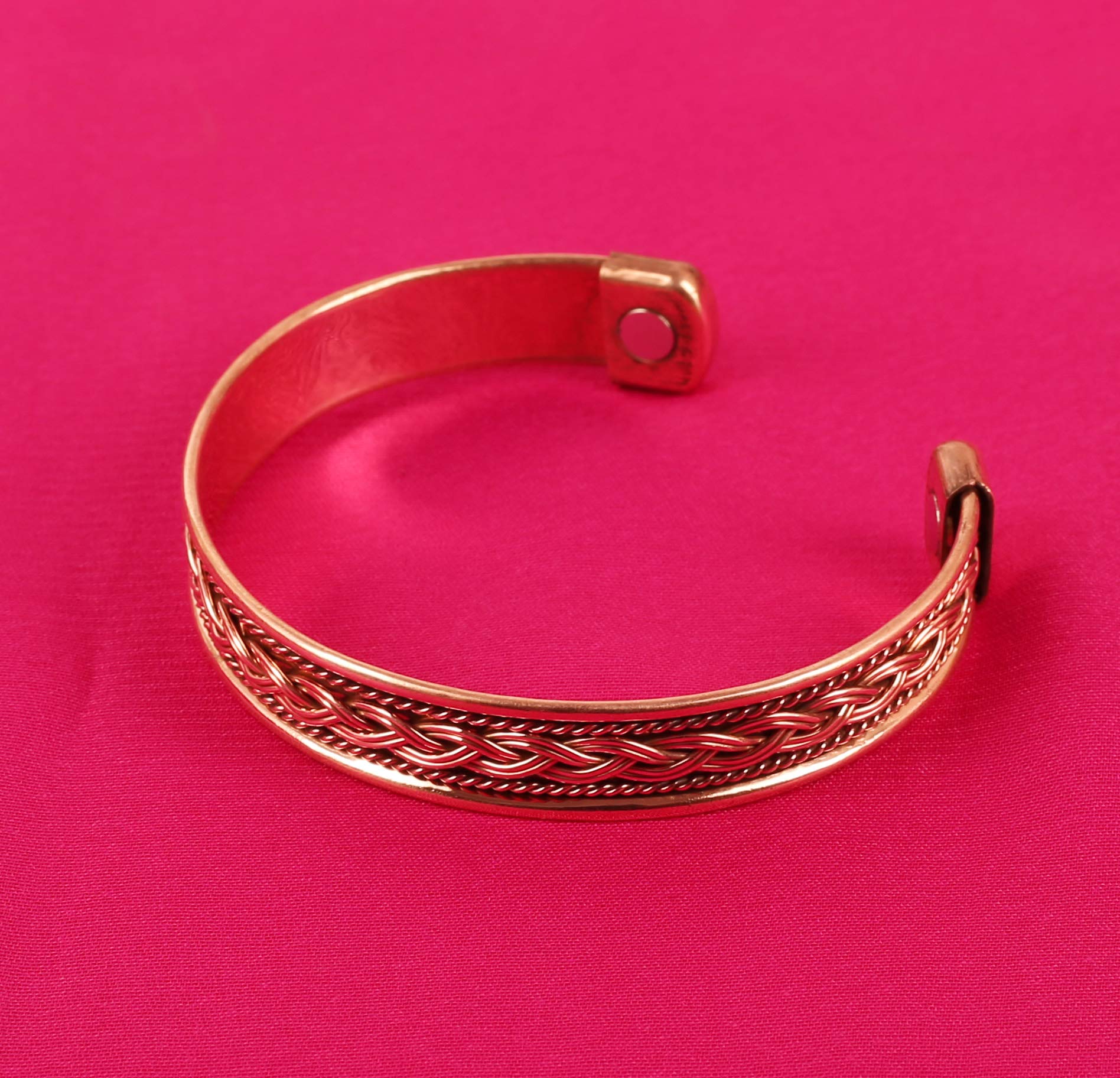 Touchstone Indian Beautifully Twisted Wire Hammered Braid Magnetic Healing Copper Peace Chakra Yoga Meditation Mantra Jewelry Bracelet for Women and Men.