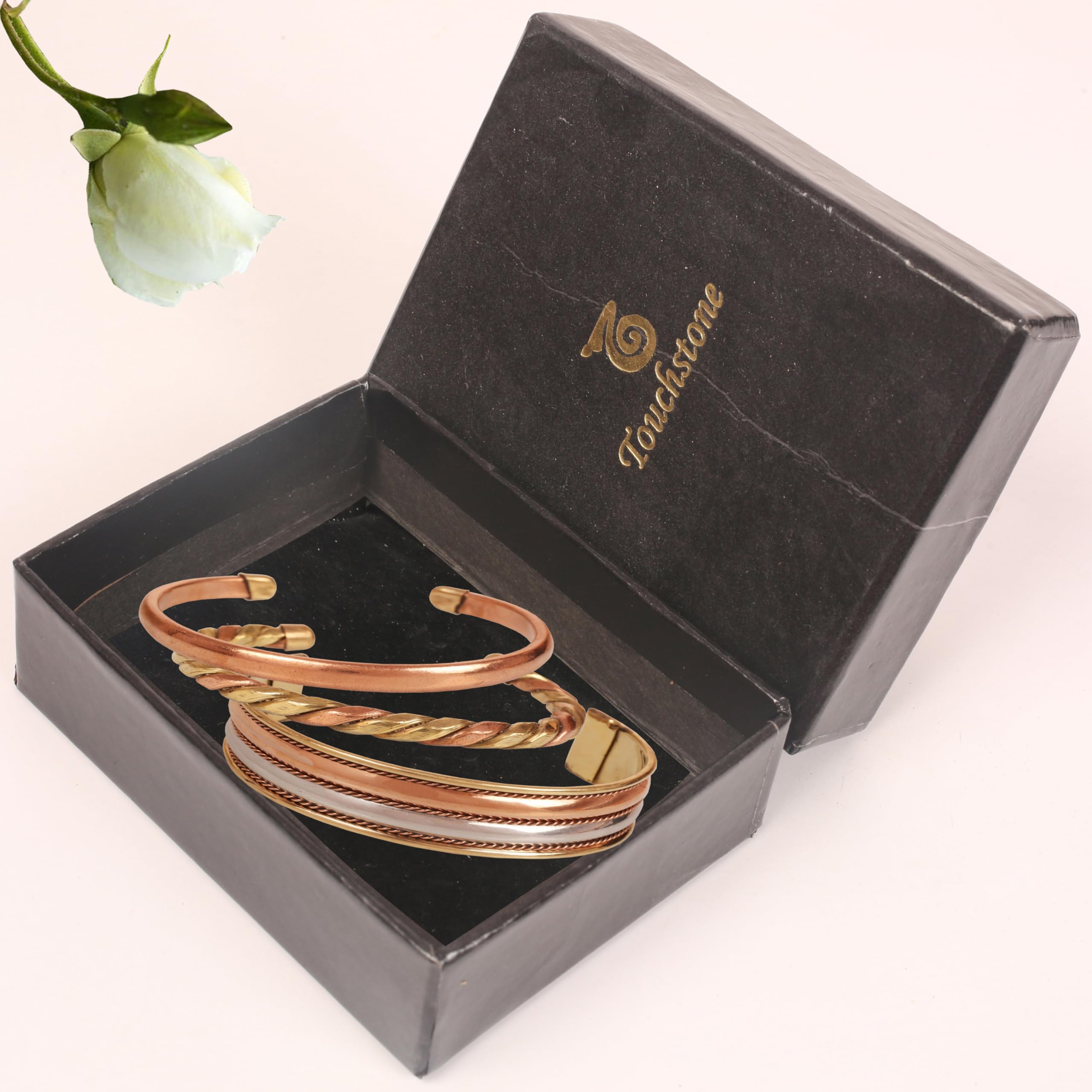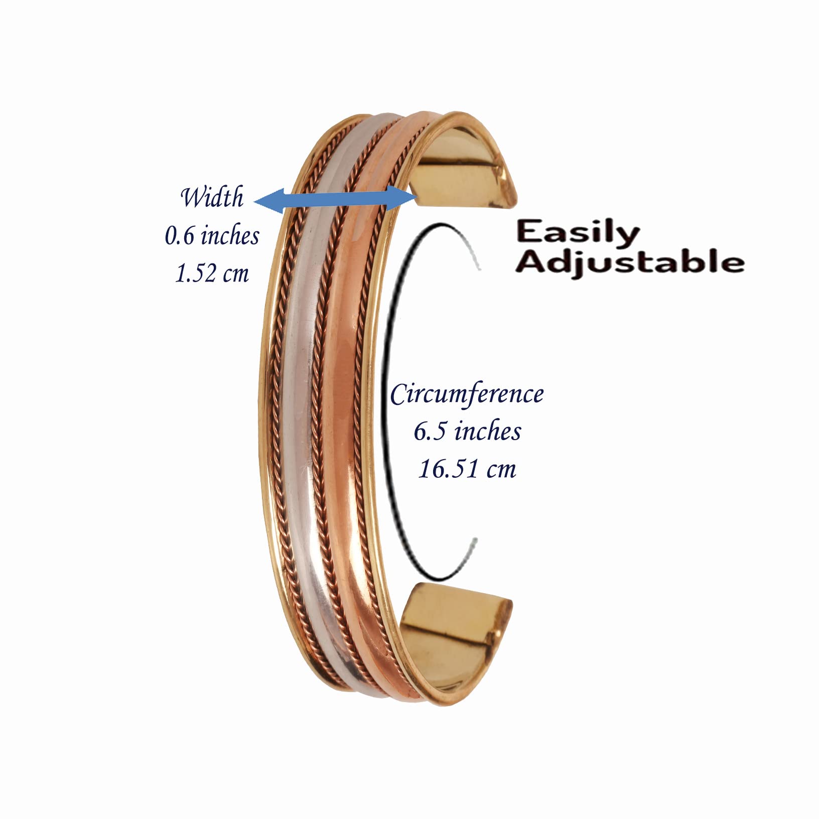 Touchstone Indian Three Metal Copper Brass Peace Healing Chakra Yoga Meditation Mantra Jewelry Bracelet for Women and Men.