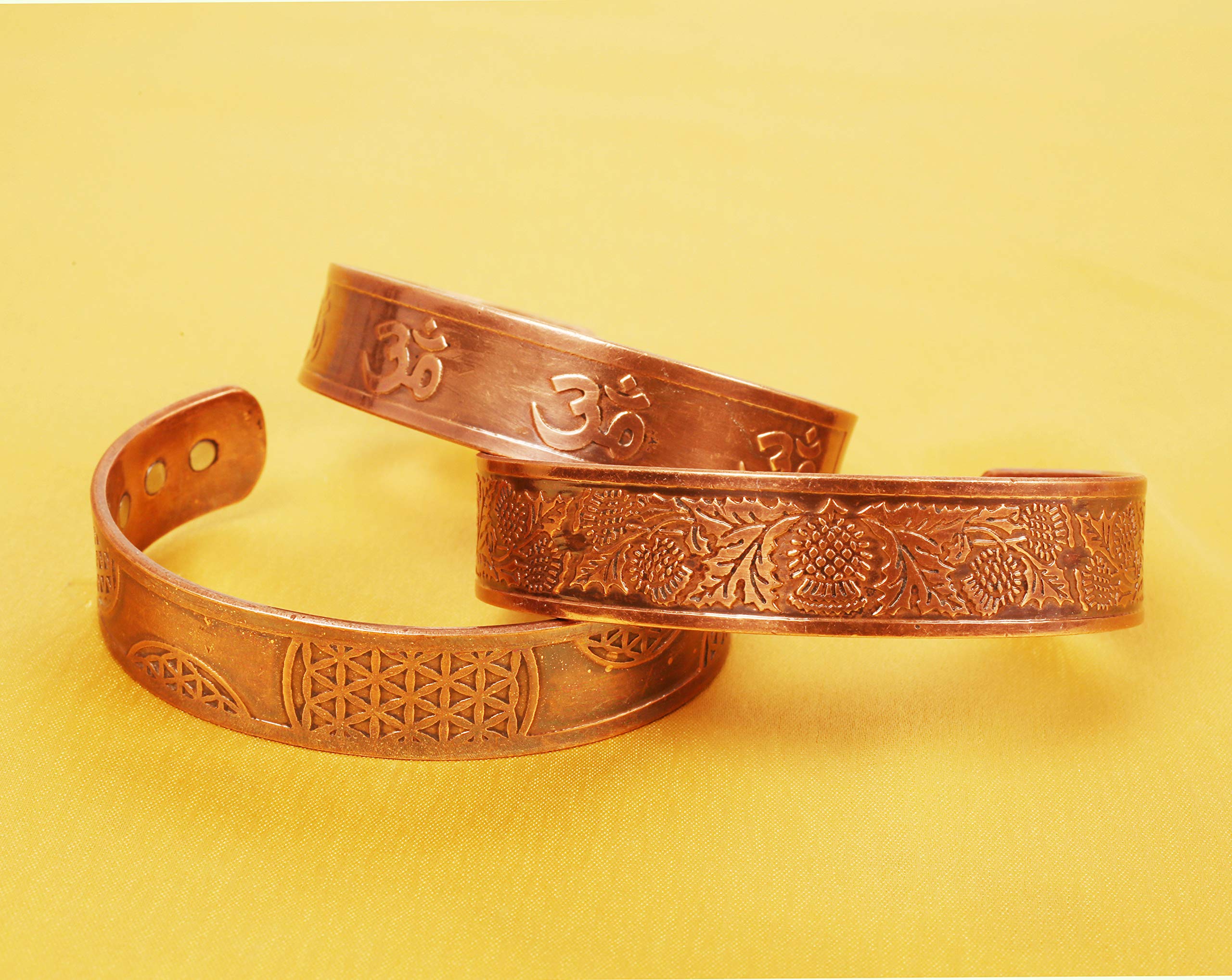 Touchstone Indian Three Metal Copper Brass Peace Healing Chakra Yoga Meditation Mantra Jewelry Bracelet for Women and Men.