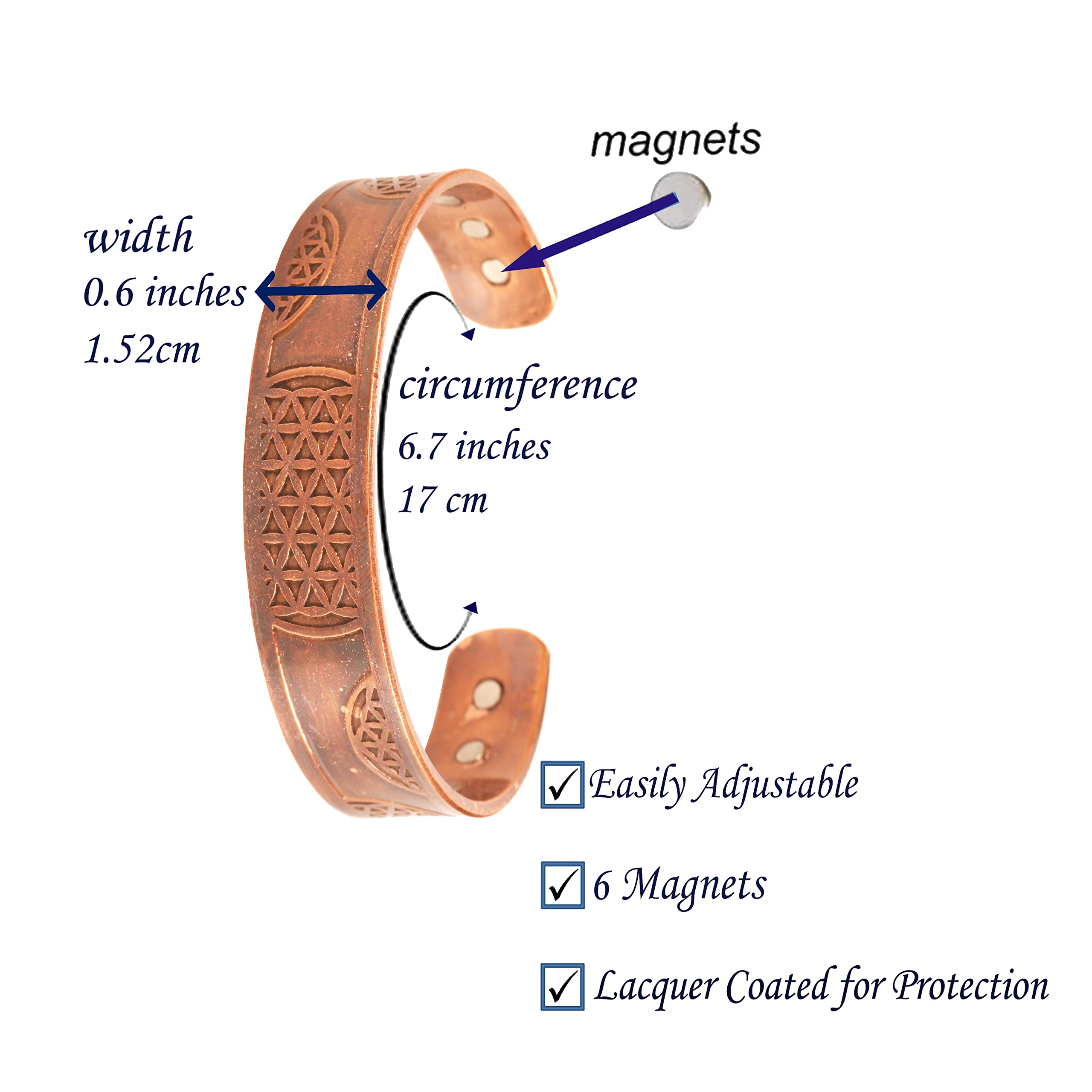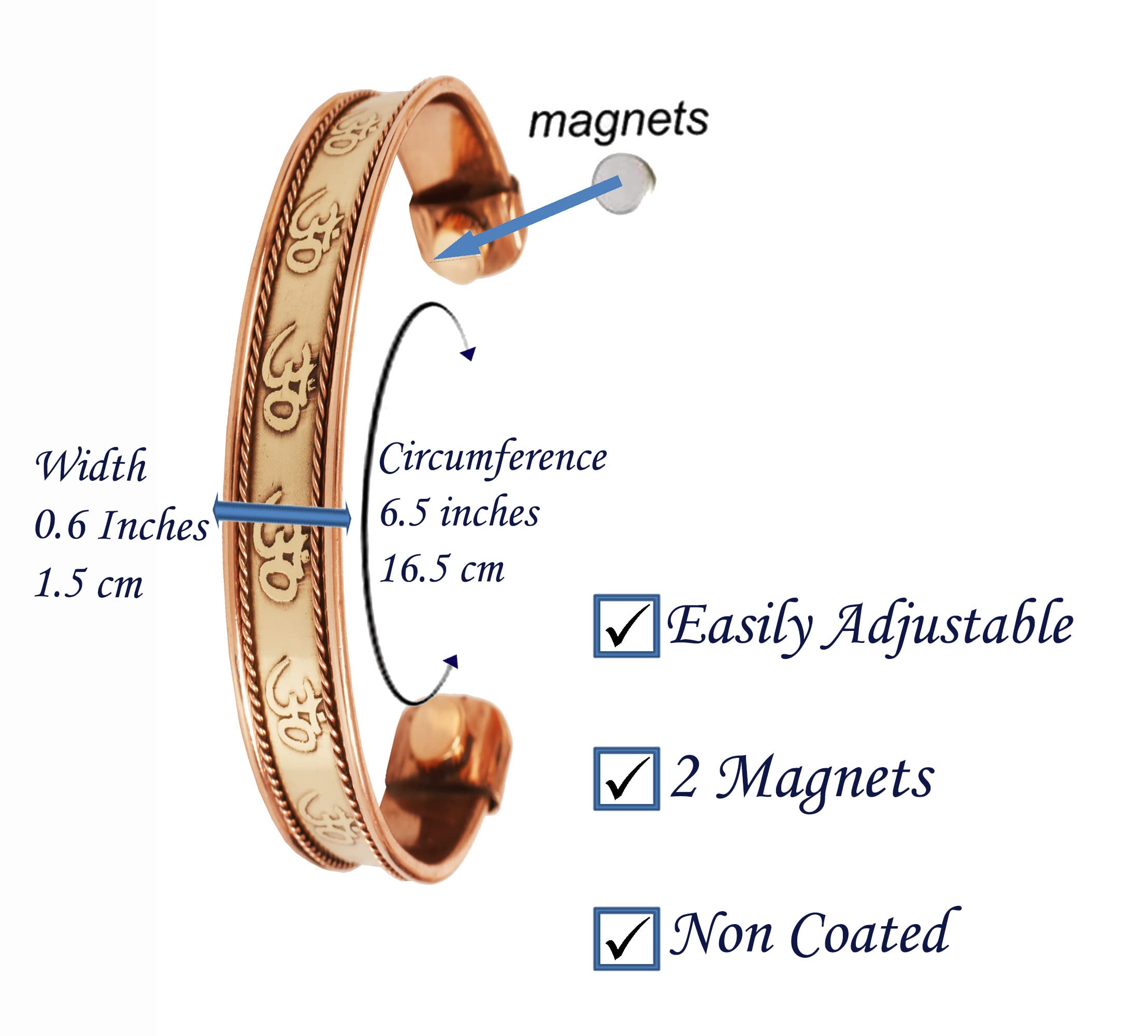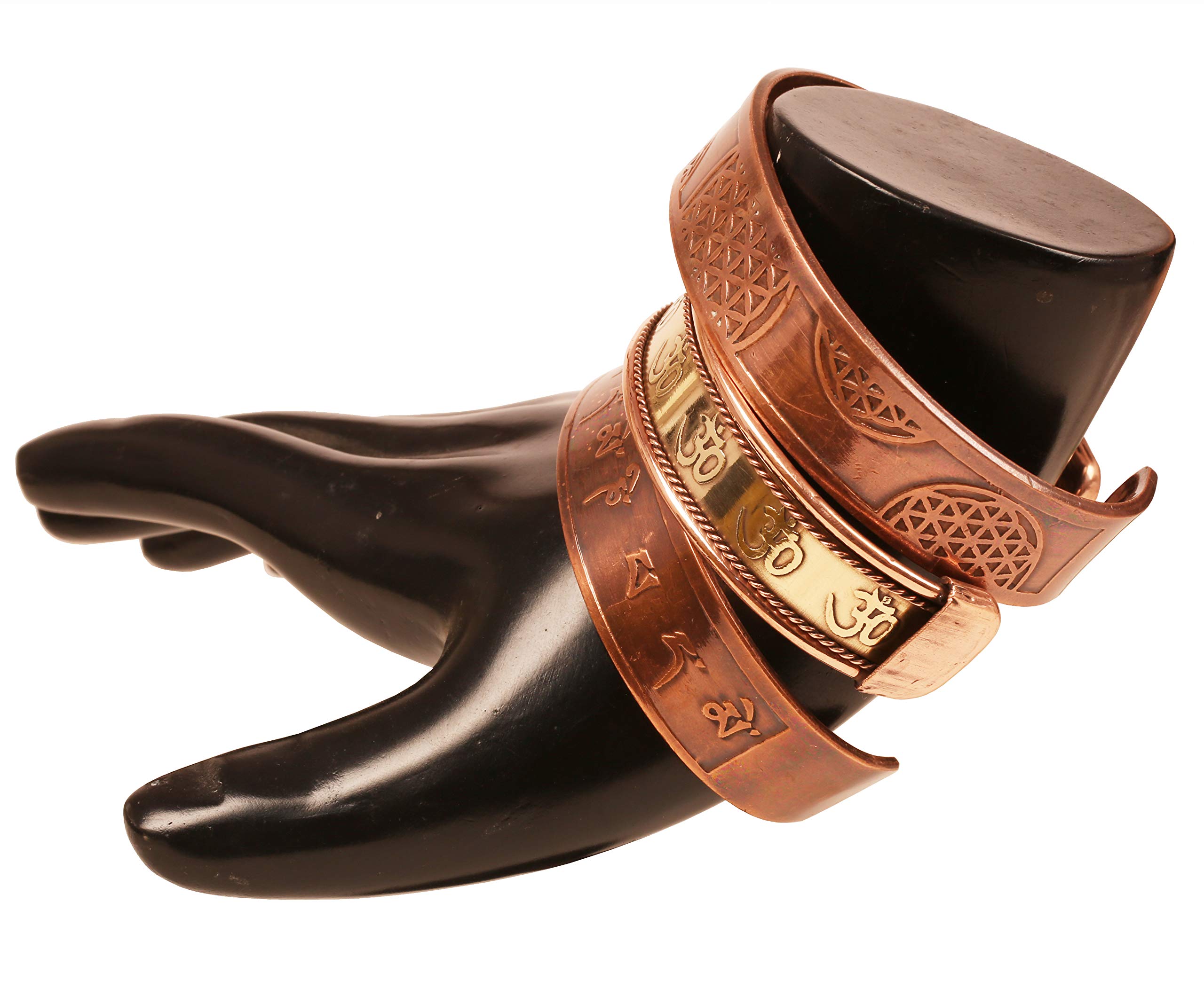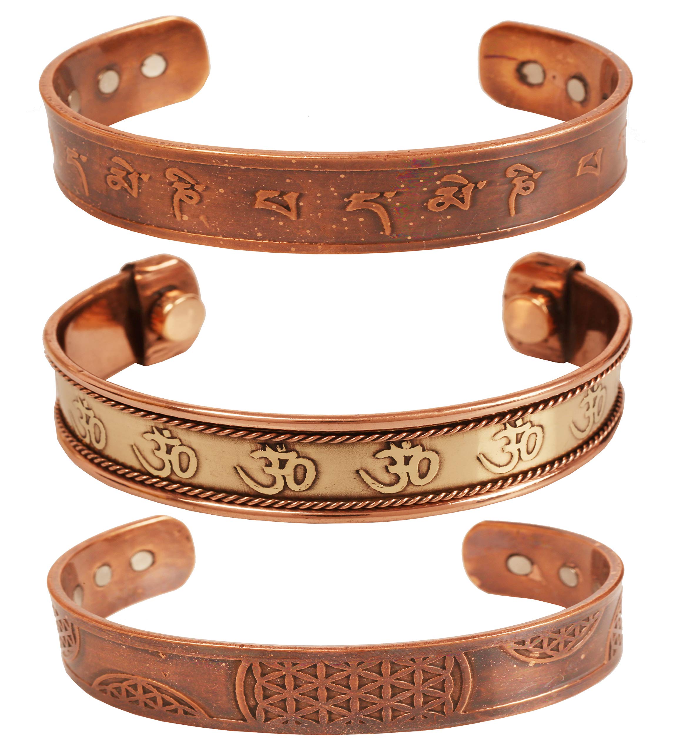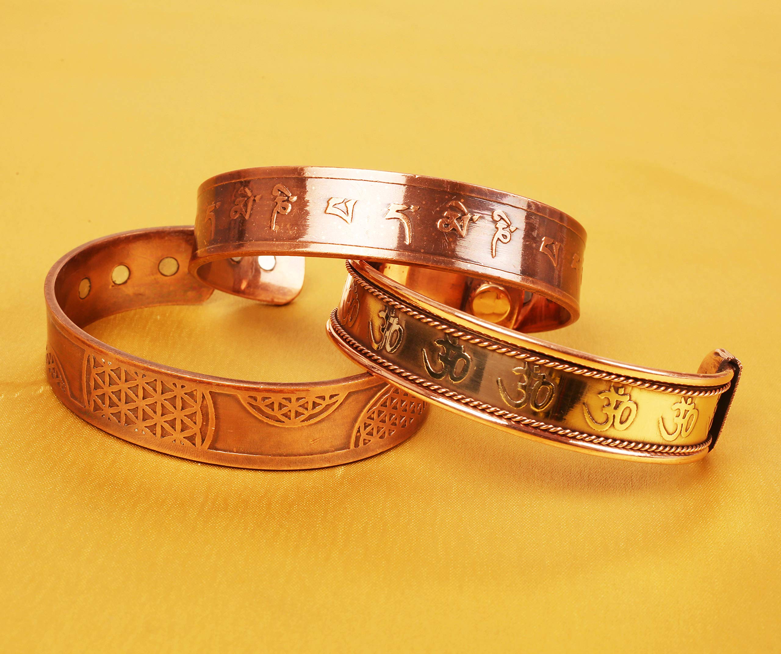 Touchstone Indian Three Metal Copper Brass Peace Healing Chakra Yoga Meditation Mantra Jewelry Bracelet for Women and Men.