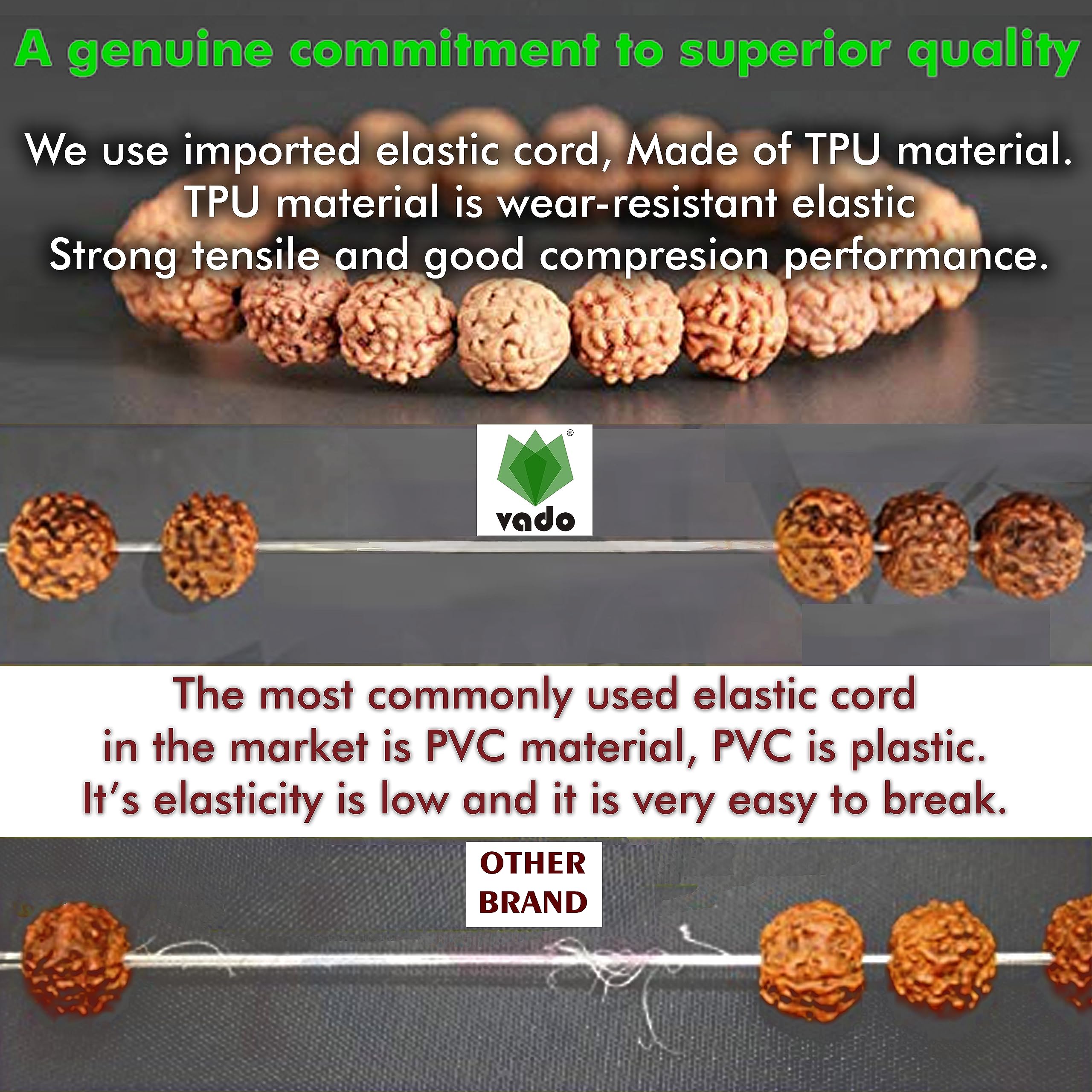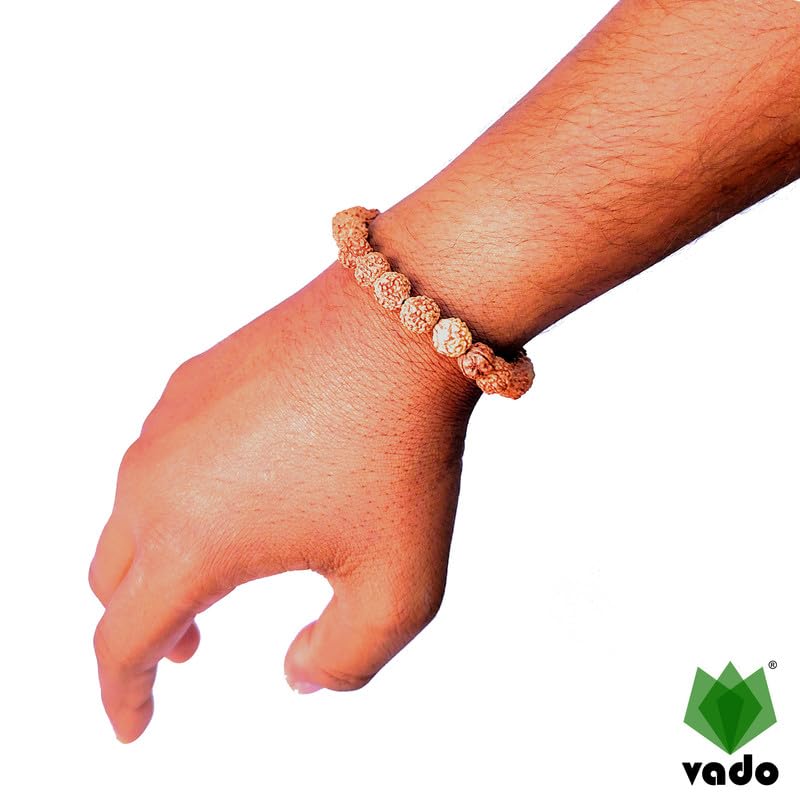Vado® Rudraksha Bracelet, Stretchable Energized Wrist Band with 5 Mukhi Natural Rudraksh Beads Pack of 1 (9MM, Brown)