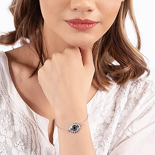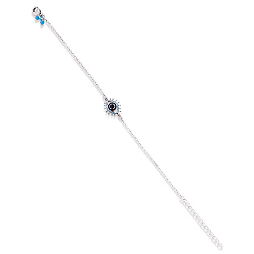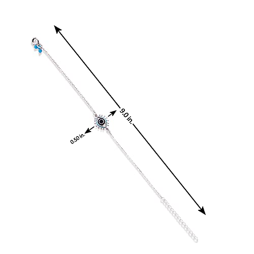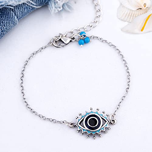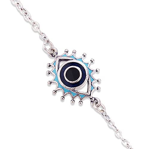Women's Brass Oxidised Evil Eyes Enameled Traditional Adjustable Bracelet(One Size)(Silver)