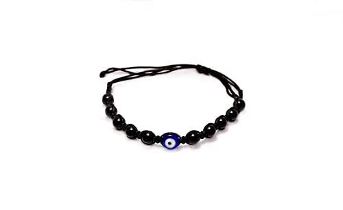 Wustifyz Classic Handmade Evil Eye Adjustable Beaded Bracelet and Anklet for Man Woman to Avoid Negative Energy for Unisex Adult (Black) Adjustable Nylon Imitation