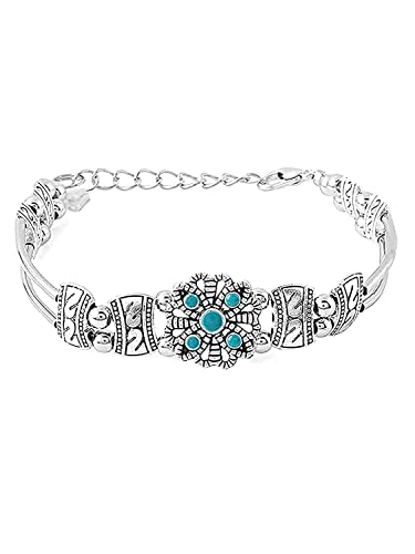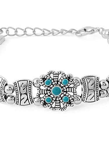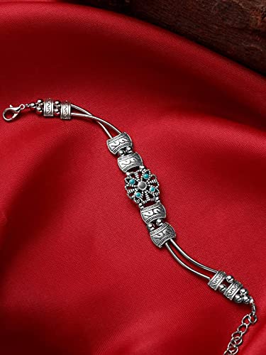 Yellow Chimes Afghani Stylish Craft Work Ethnic Oxidized Silver Charm Bracelet for Women and Girls