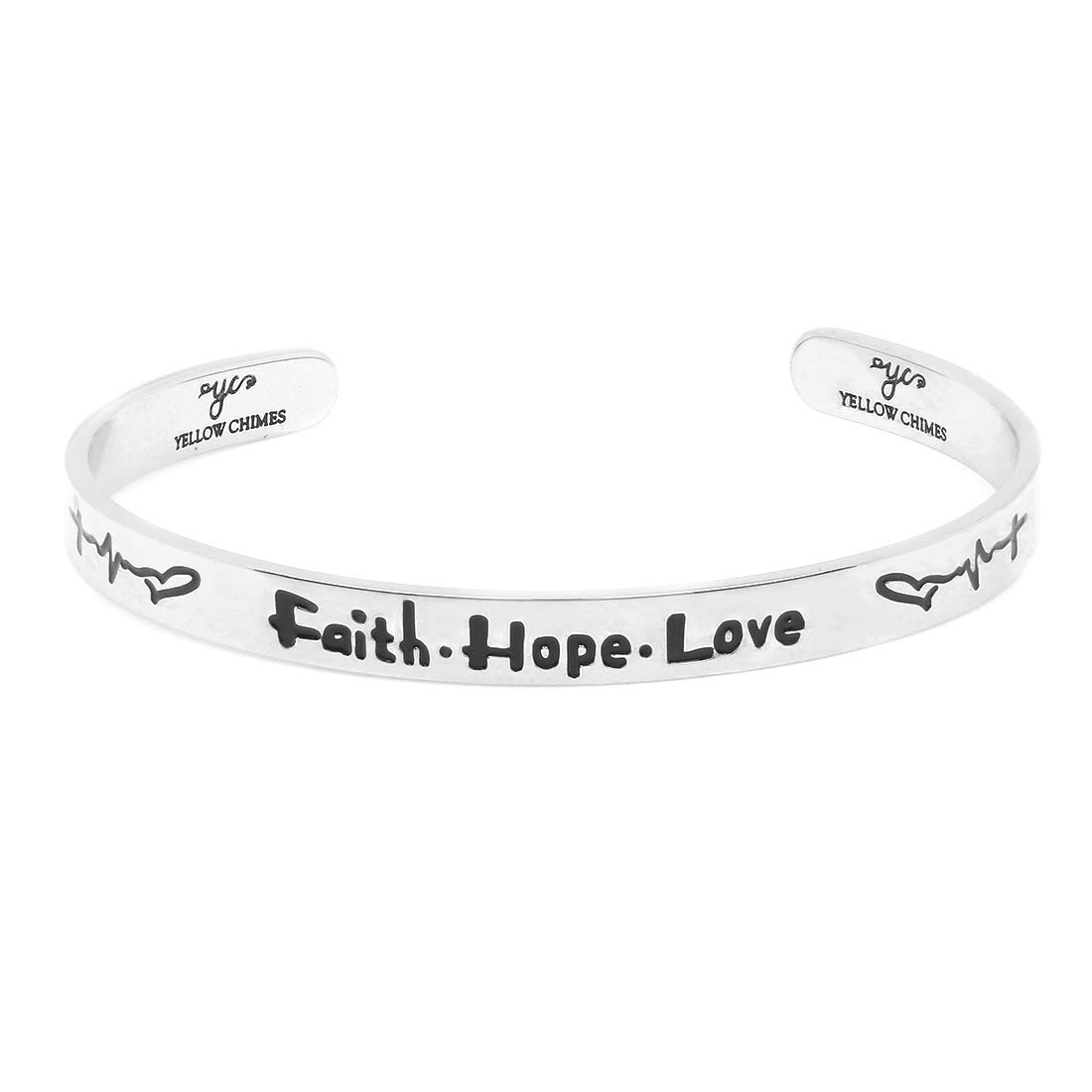 Yellow Chimes Bracelet for Unisex Faith Hope Love Inspirational Gifts Message Engraved Mirror Polish Stainless Steel Unisex Karma Band Kada Bracelet for Men and Women