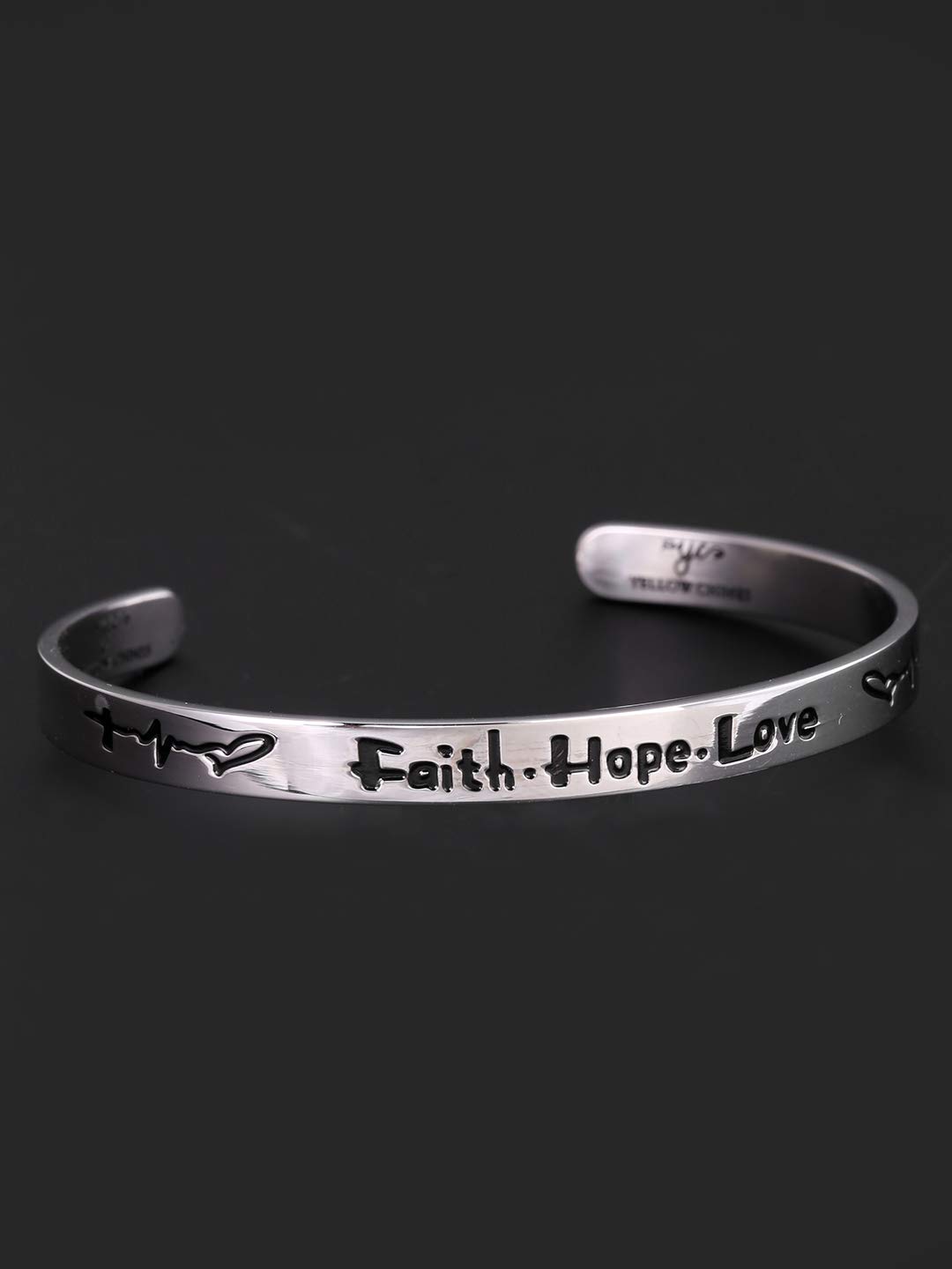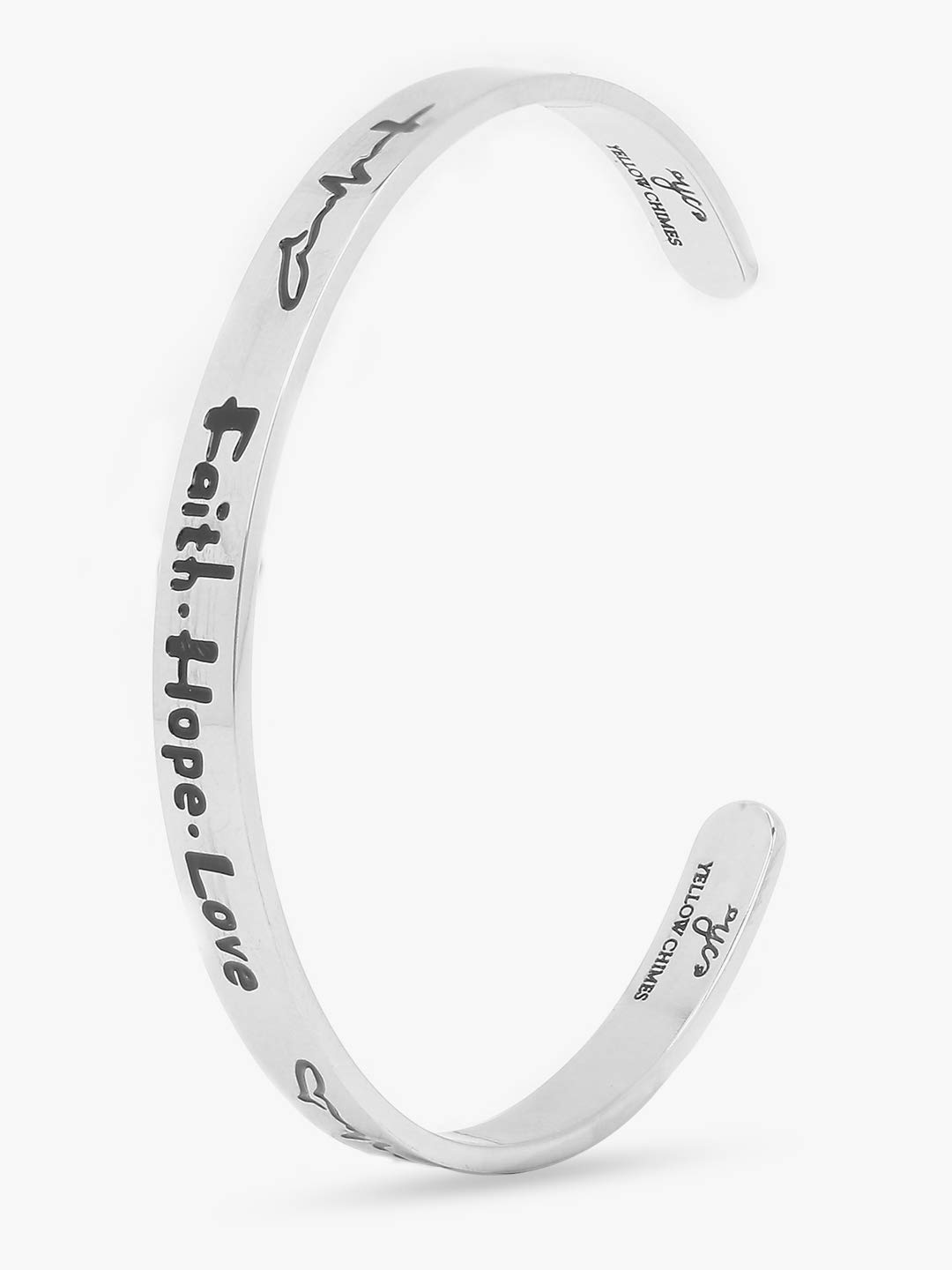 HomeFashionBraceletYellow Chimes Bracelet for Unisex Faith Hope Love Inspirational Gifts Message Engraved Mirror Polish Stainless Steel Unisex Karma Band Kada Bracelet for Men and Women
