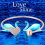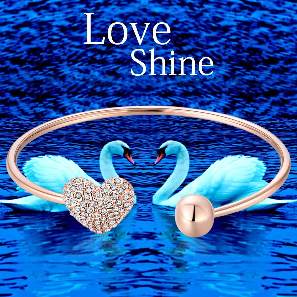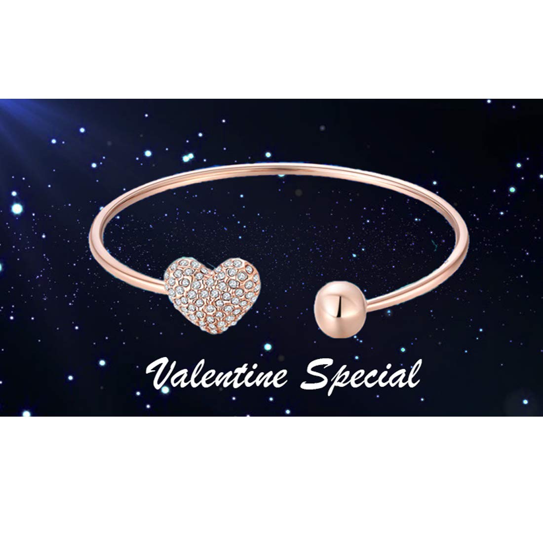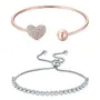Yellow Chimes Combo Bracelets for Women 2 Pcs Charm Open Bangle Heart Shape White Crystal Charm Chain Bracelets set for Women and Girls Valentine Gift for Girls