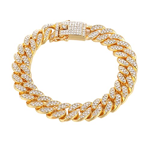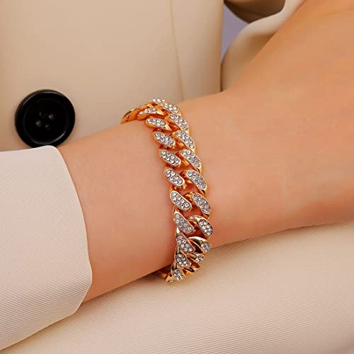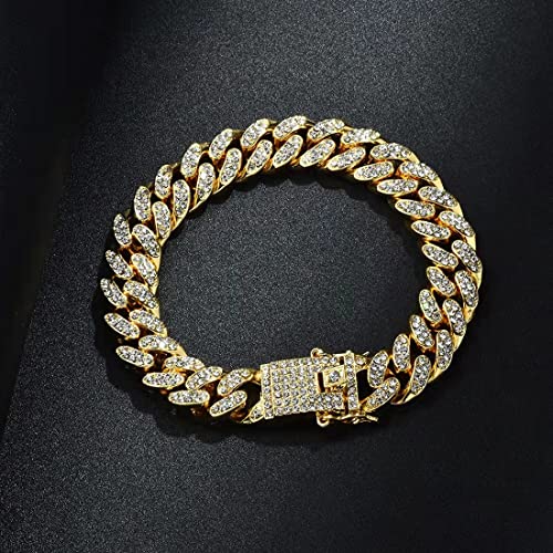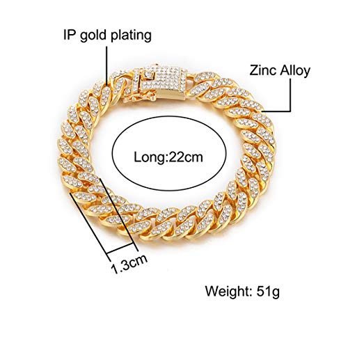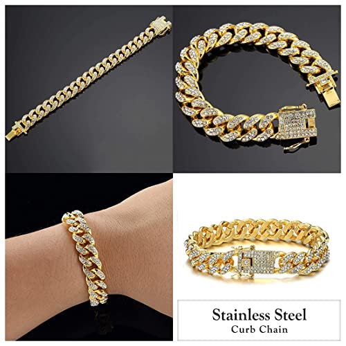 Yellow Chimes Men's Bracelet for Men Gold Plated Crystal Studded Curb Chain Wide Bracelet Gold Medium