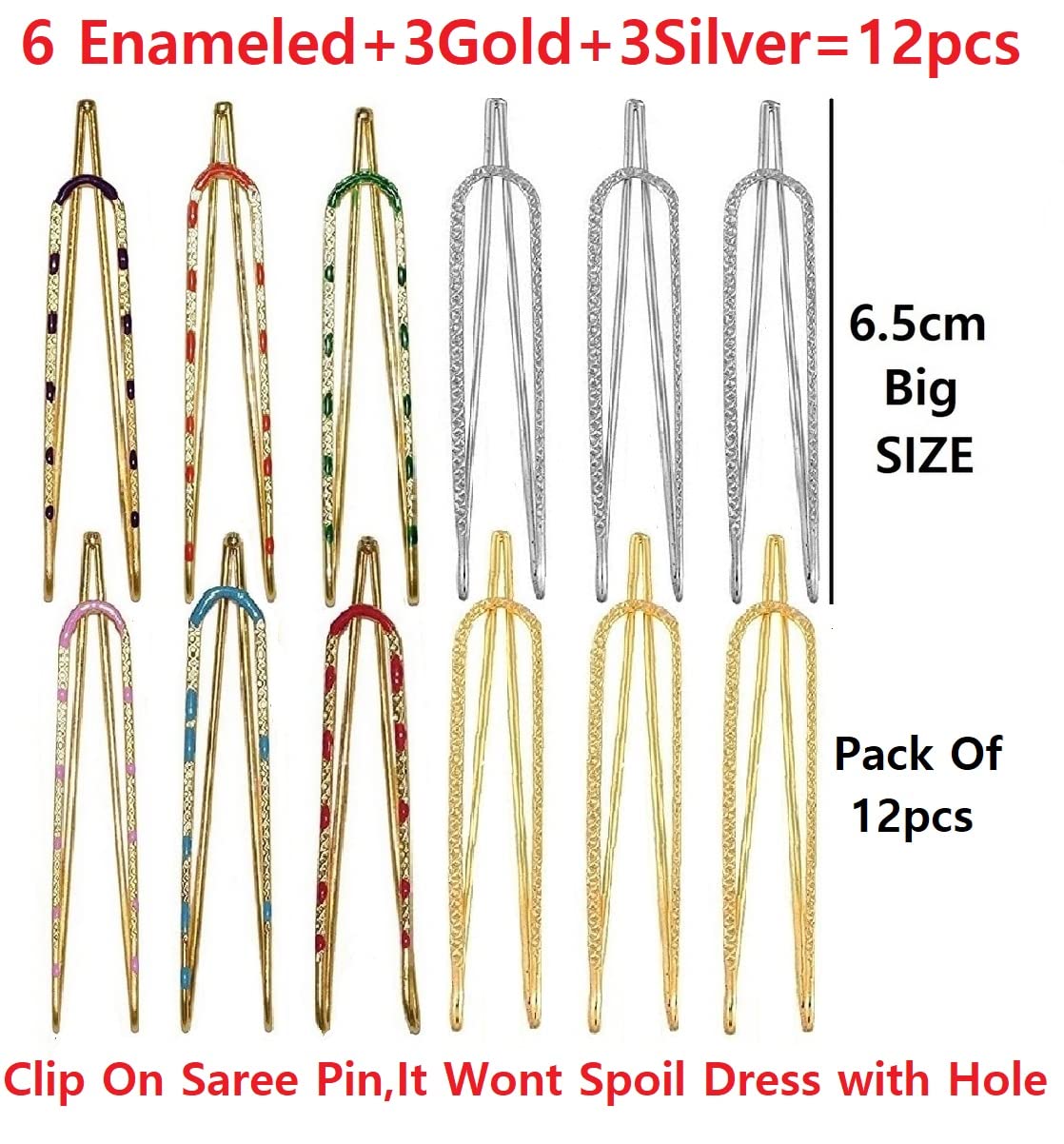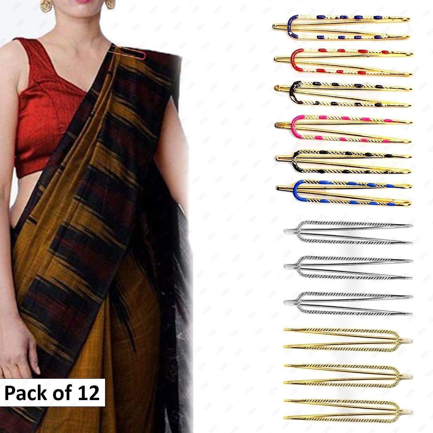 VAMA FASHIONS Multicolor Saree Safety Pin Brooch for heavy sarees Pallu Dresses Odhani Metal Pins