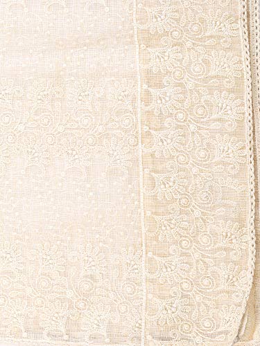 DUPATTA BAZAAR Women's Off White Cotton Lucknowi Embroidery dupatta