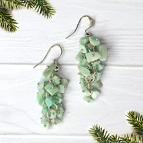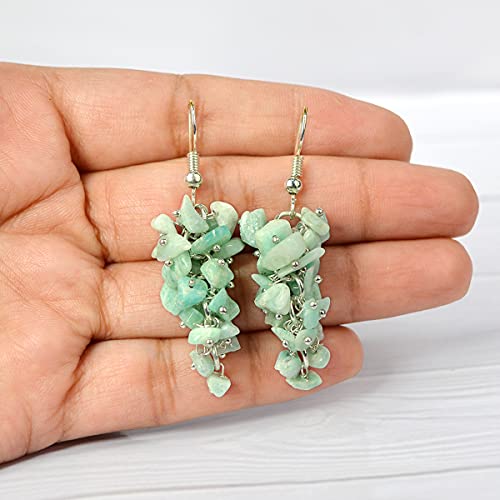 Amazonite Earrings Natural Chip Beads Earrings for Women, Girls (Light : Green)
