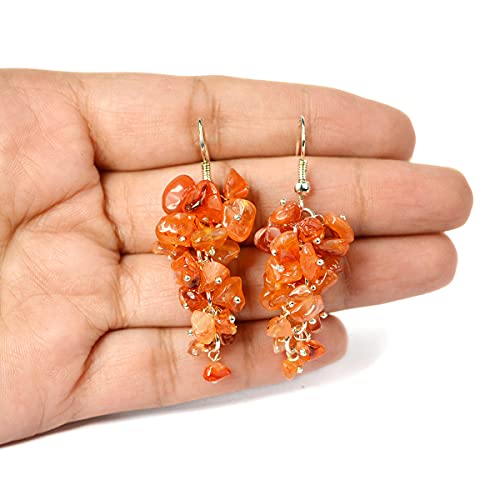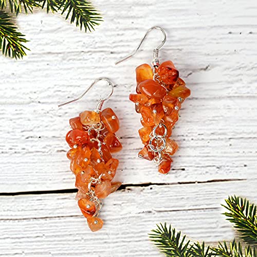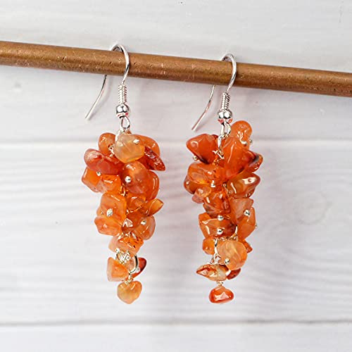 Carnelian Earrings Natural Chip Beads Earrings for Women, Girls (Orange)