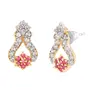 Estele 24 Kt Gold and Silver Plated American Diamond Ruby flower Brass Damask Stud Earrings For Girls