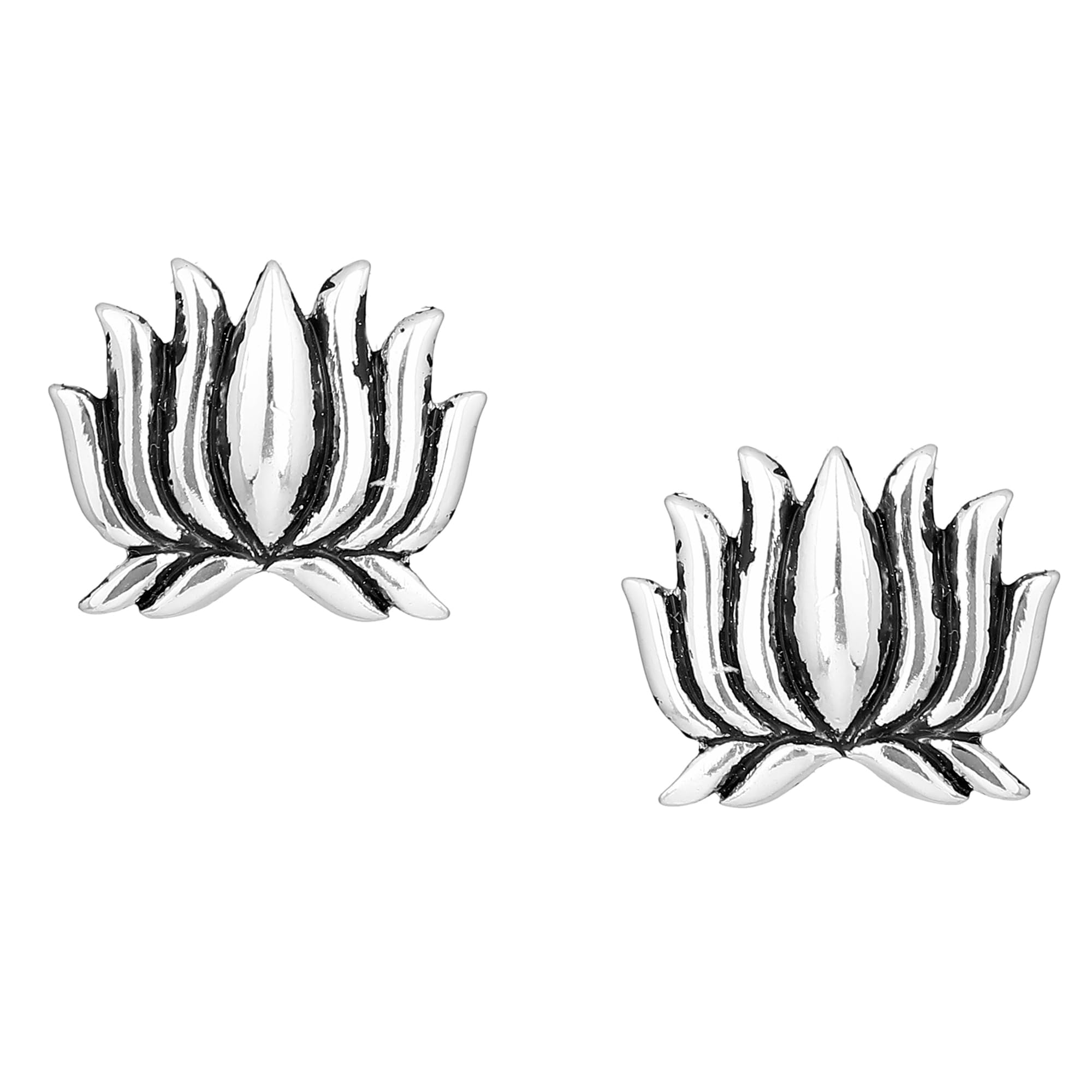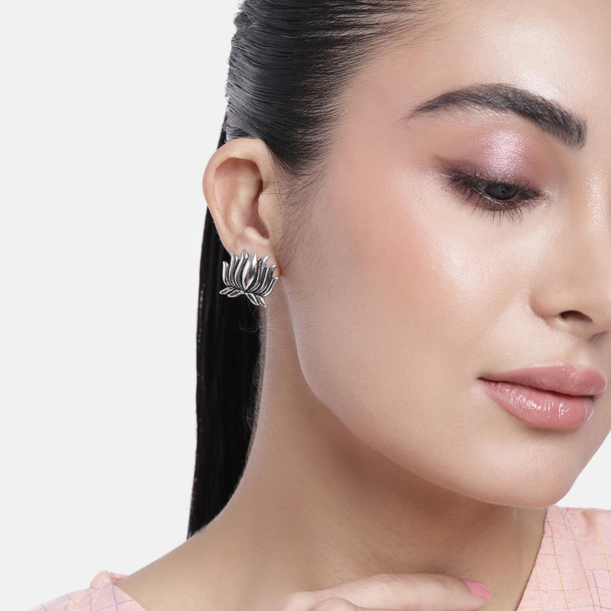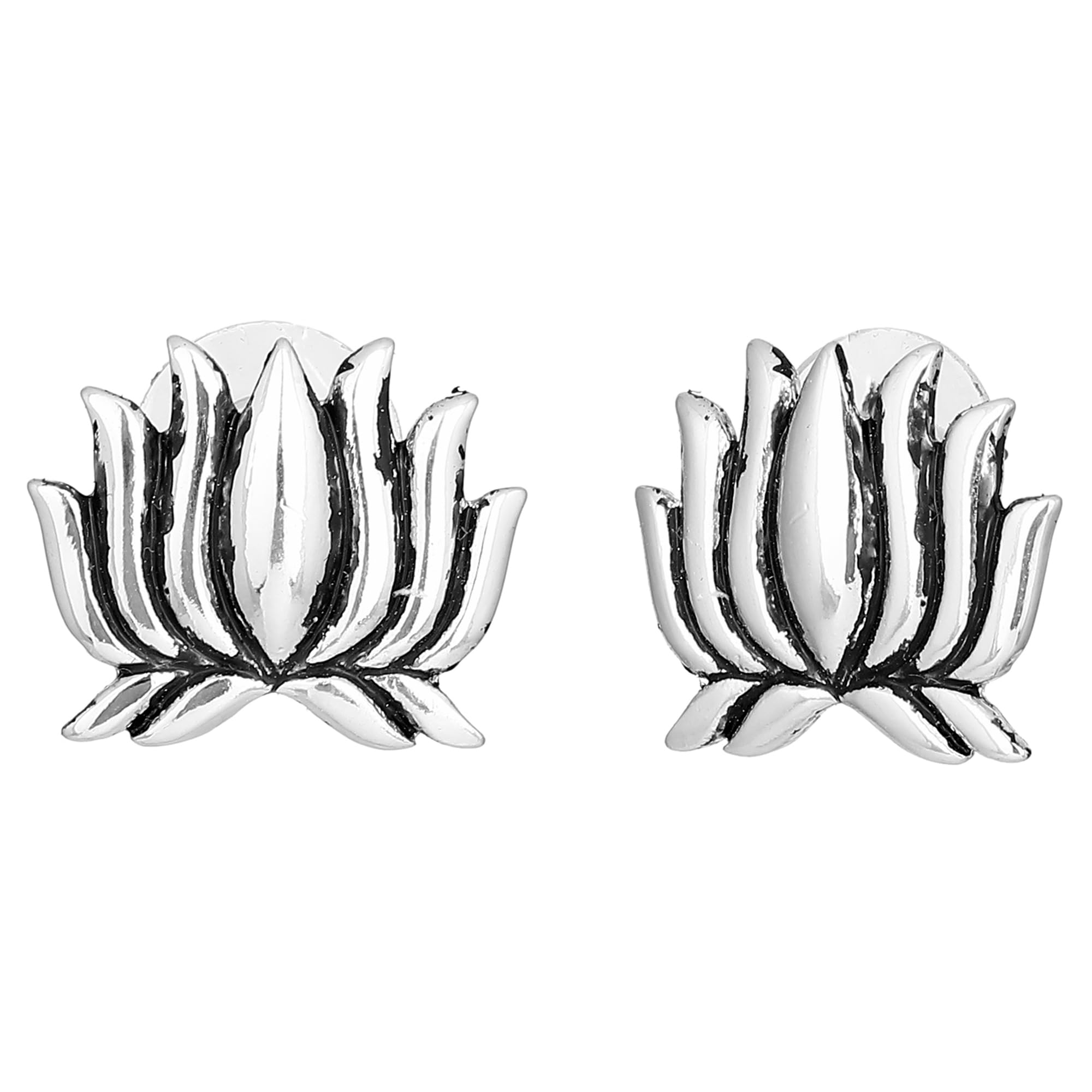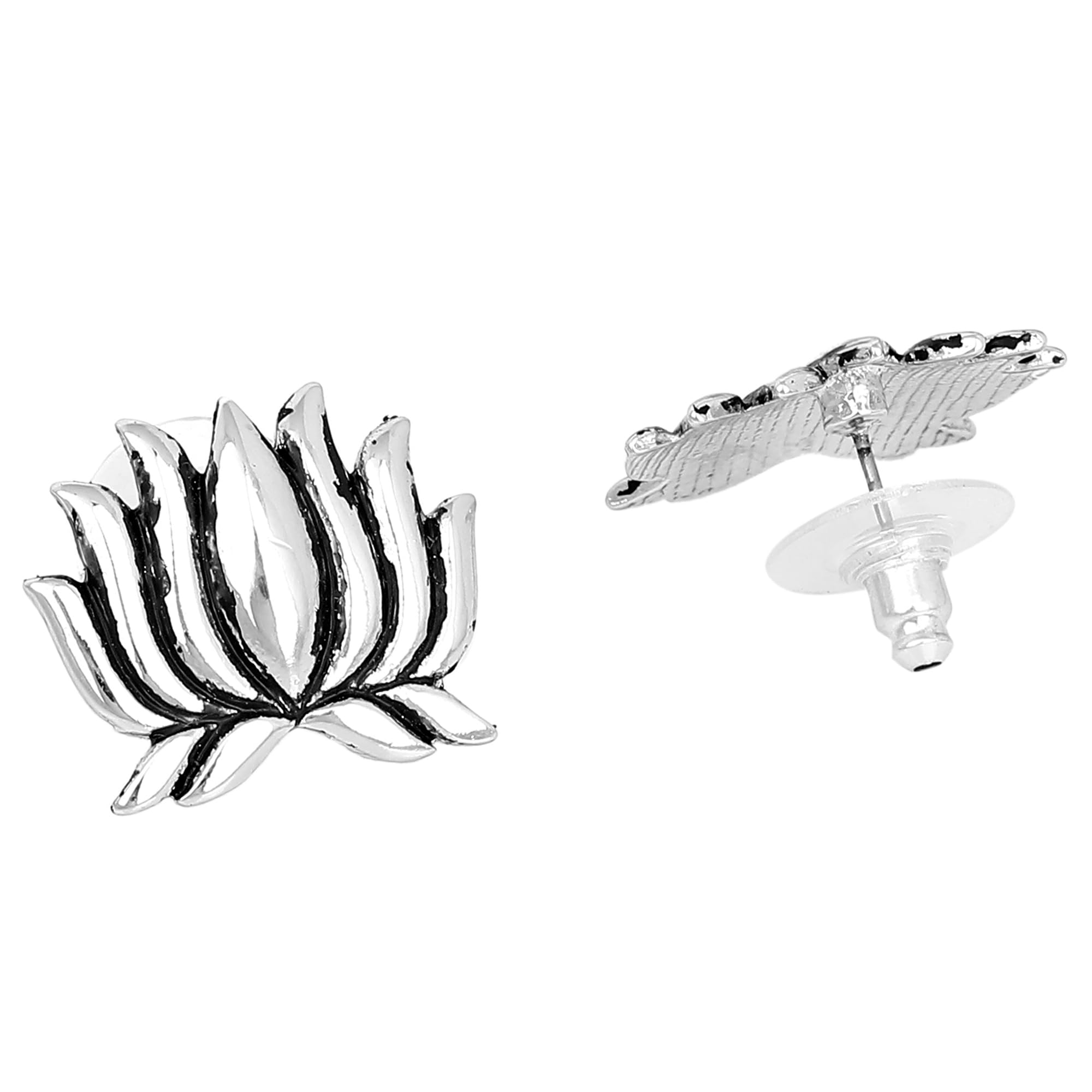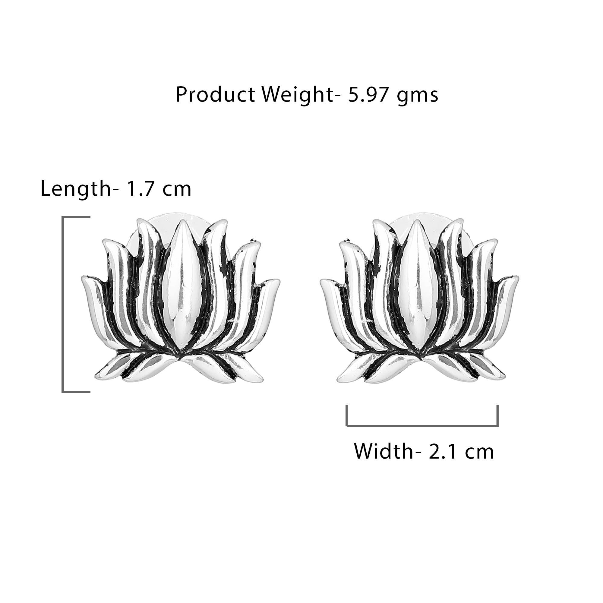 Estele Oxidized Silver Plated Lotus Shaped Stud Earrings For Women