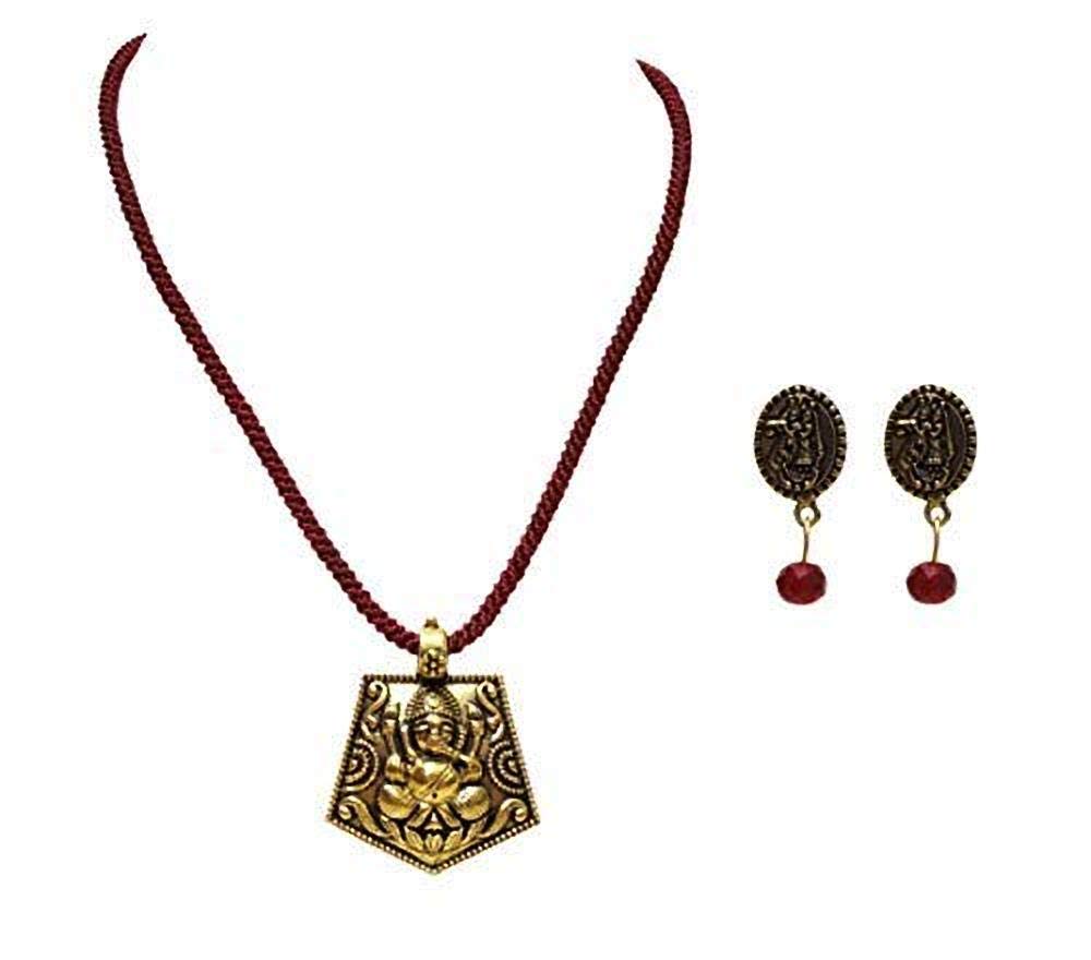 GOELX Red Handcrafted Lord Ganesha Pendant Set with Earrings for Women