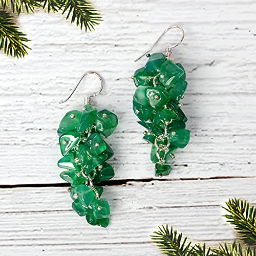 Green Onyx Earrings Natural Chip Beads Earrings for Women, Girls (Green)