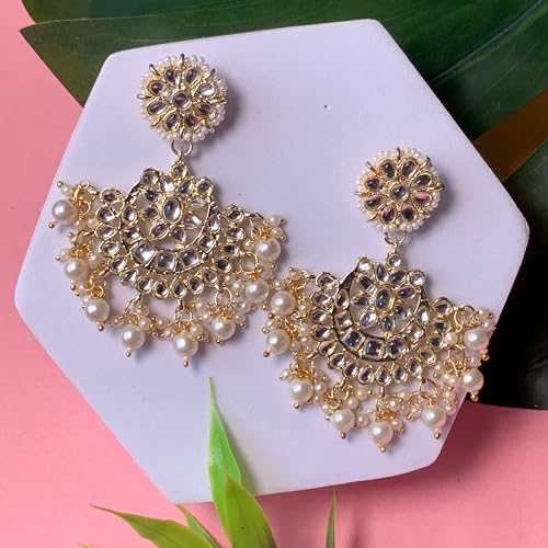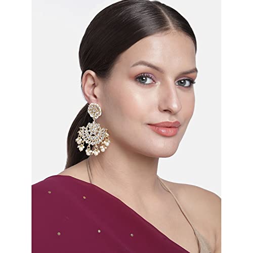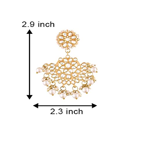 I Jewels 18K Gold Plated Indian Wedding Bollywood Matt Finish Chandbali Earrings Handcrafted Kundan & Pearl (E2911-1)