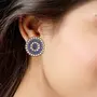 I Jewels Ethnic Silver Oxidized Kundan Meena Work Designer Circular Stud Earrings for Women(E2937Z)