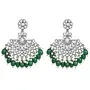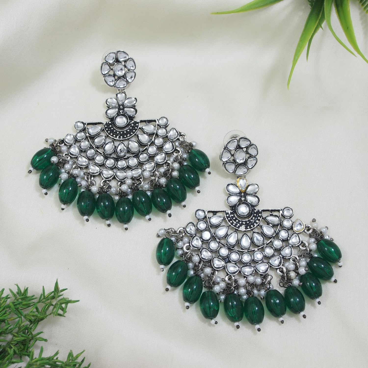 I Jewels Navratri Ethnic Stylish Silver Oxidised Kundan Pearl Chandbali Earrings For Women And Girls (E3106Z)