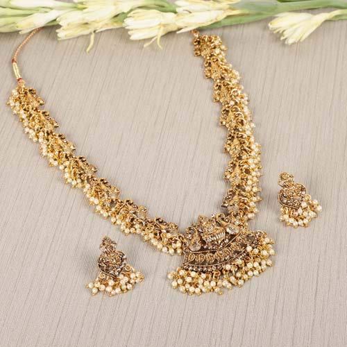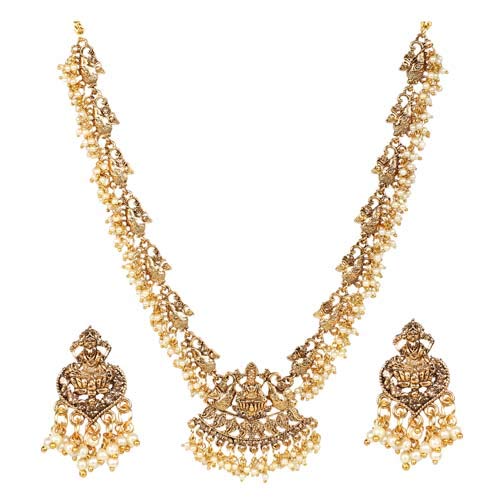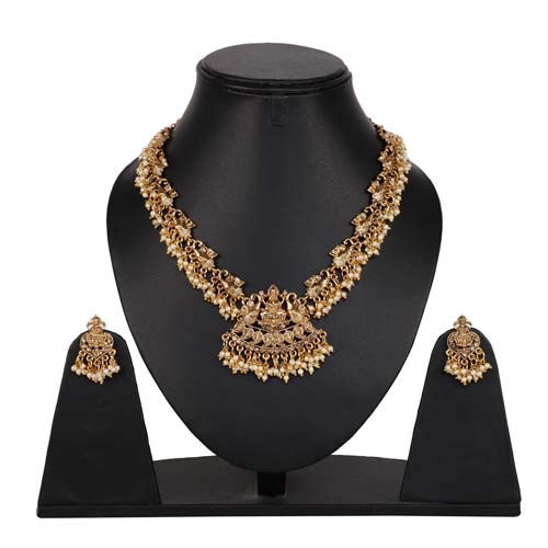 KUNDAN & MEENAKARI JEWELLERY Gold Traditional Jewellery Kundan Pearl Necklace with Earrings For Women