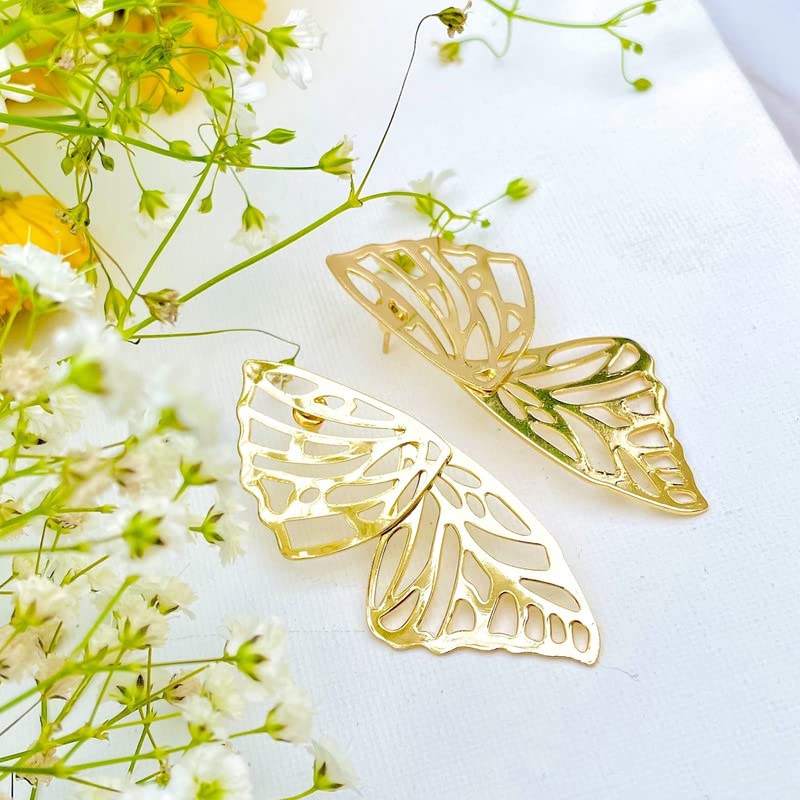 A symbol of change and transformation our Angel Wings earrings are one of a kind earrings that represent metamorphosis. Contemporary exaggerated butterfly wings earrings to add glam to your everyday gifts. Our Angel Wings earrings feature two butterfly asymmetric exaggerated hollow wings laid in a gold-toned metal with a push back earring back closure for your comfort. ¨Quirky and playful these earrings are for the women that like to dress to express. Fly high with our Butterfly Wings earrings and add a touch of drama to all your fits ranging from everyday wear to brunch with the girls to night outs and parties. Super versatile these gold-toned contemporary earrings are going to be your all time g-to in your jewellery wardrobe. One of a kind these earrings will suit all your western and ethnic fits effortlessly. Get in with the trend and carry your wings for everyone to see. ¨¨ Chic redefined with our Iqraar earrings that look and feel like a million bucks and are a head-turner. Radiate glow with the sun during the day and shine like the stars at night with these earrings that make day-to-night looks super easy and comfy! Salve Style Tip:¨Pair our Angel Wings earrings with an off shoulder top jeans and some minimal rings from our collection. For ethnic styling pair it with your favourite saree and create a stunning indo-western fusion for all that sass and glamour! Jewellery Care:¨1. Store them in an airtight box and wrap up individually in zip locks 2. Keep your jewellery away from perfumes hairsprays serums oils and other cosmetics and chemicals. 3. Avoid contact with water and chlorine (swimming pools) 4. Your jewellery should be the last thing to put on and the first thing to take off. ¨Timeless bold and beautiful: Timeless piece of jewellery by Salve that will never go out of style. Be the talk of the fashion town with these super trendy earrings.