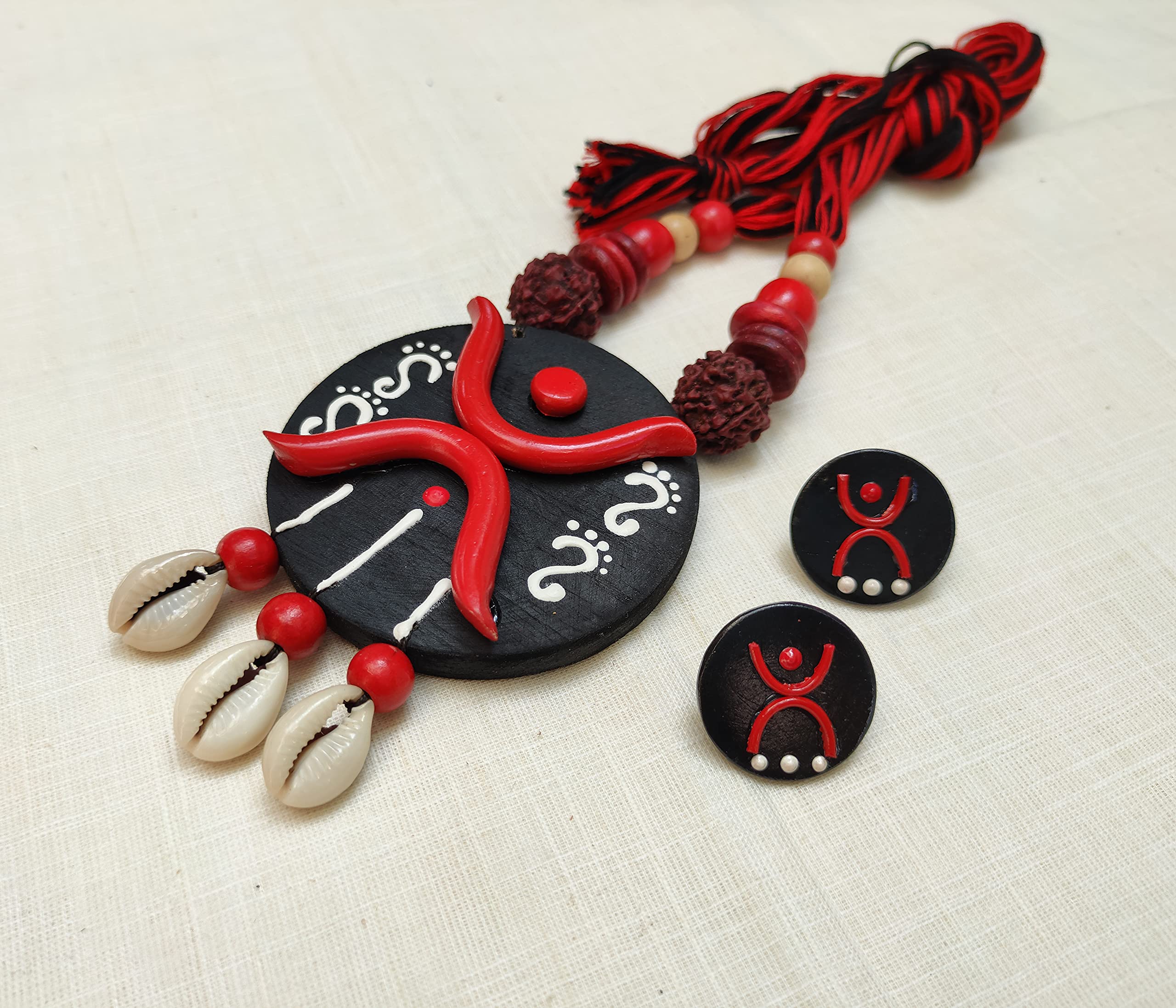 TERRACOTTA JEWELLERY Necklace Women love jewellery; specially Necklace Kada adore a women. They wear it on different occasion. They have special importance on ring ceremony wedding and festive time. They can also wear it on regular basics. Make your moment memorable with this range. This Necklace set features a unique one of a kind designer with Royal finish.