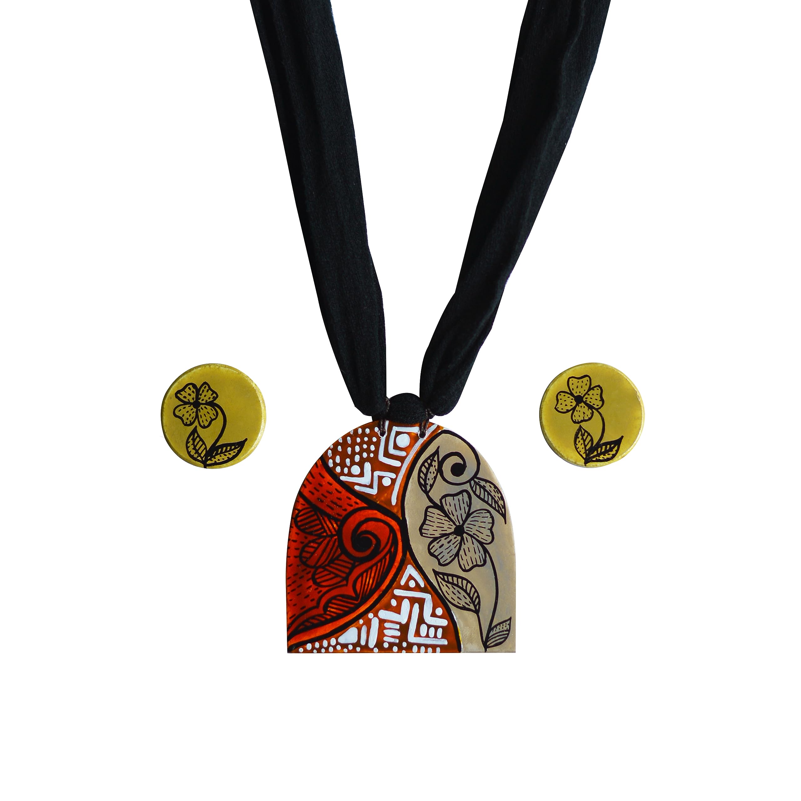 TERRACOTTA JEWELLERY Synthetic Clay Fabric Madhubani painting Fully Handcrafted Necklace and Ear Ring Jewellery sets For Women and Girls (Color MultiSize:Free)
