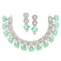 Zeneme Rhodium-Plated With Silver-Toned Red And White American Diamond Studded Choker Necklace And Drop Earrings Jewellery Set For Women