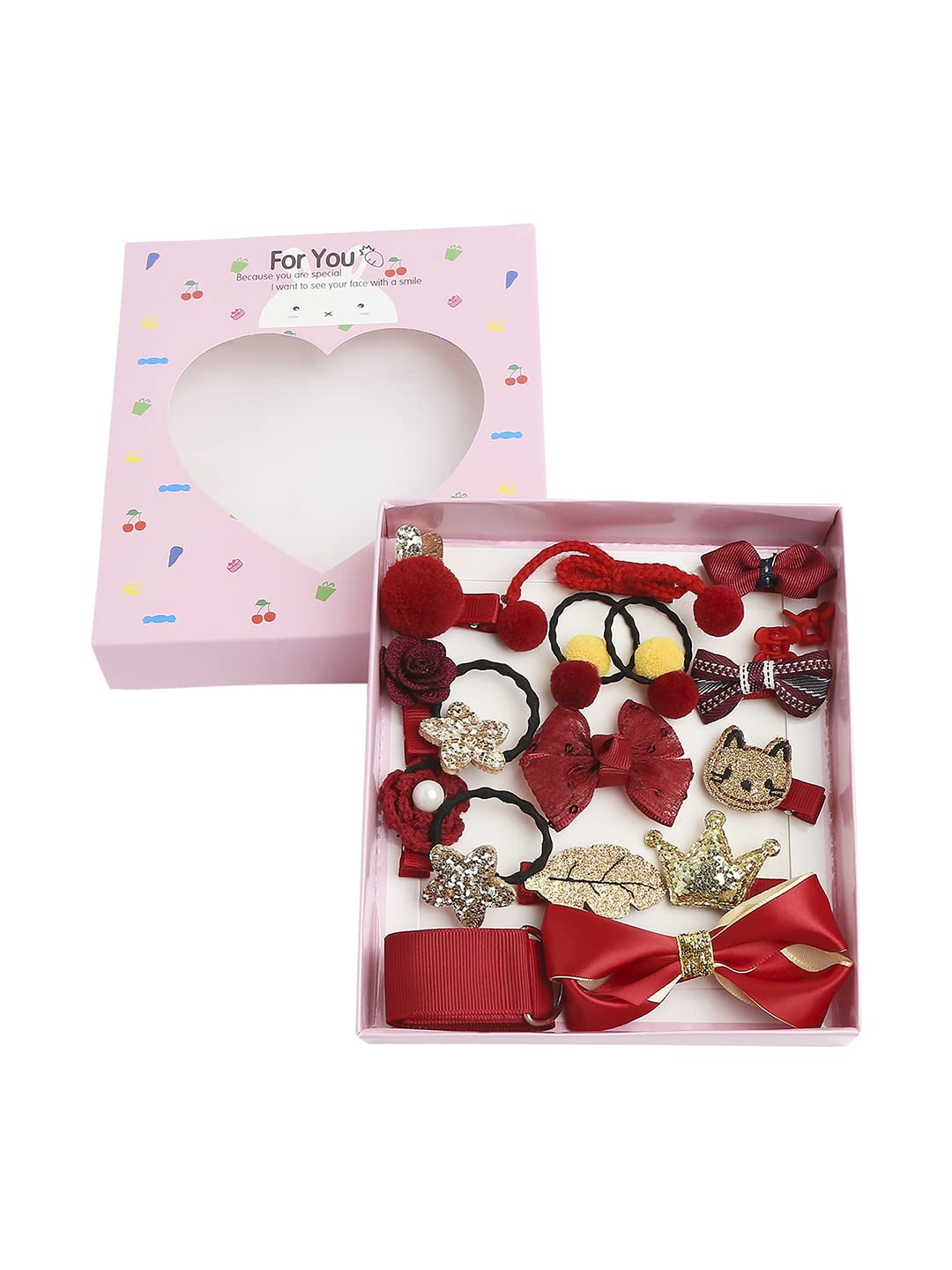 HomeFashionHair AccessoriesBabyMoon 18Pcs/Set Mix Style Headwear Set Children Accessories Ribbon Bow with Full Covered Clips Hairpins for Girls Princess Crown Headdress Hair Accessories with Gift Box