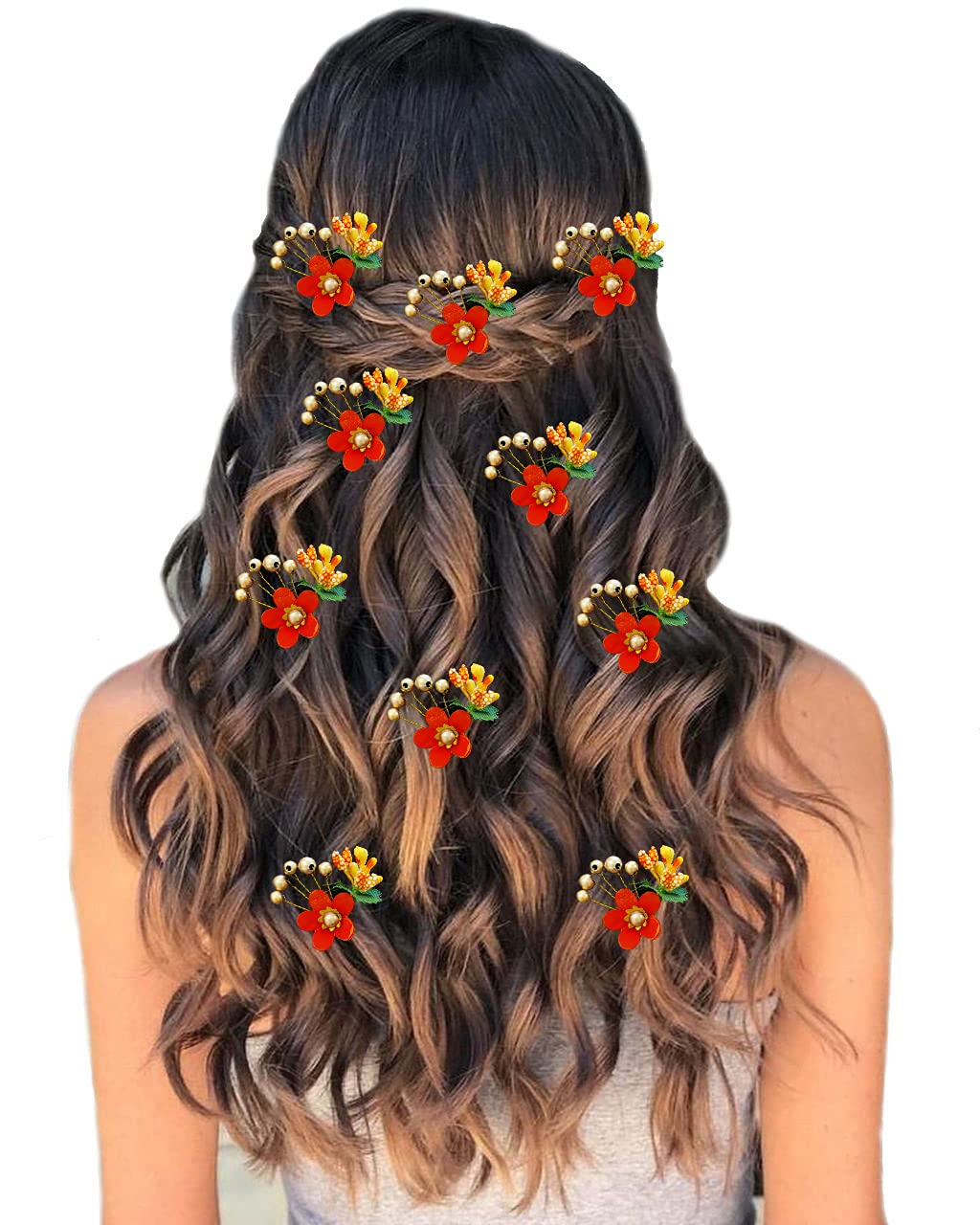 Hair Flare Floral Hair Vein and Hair Pin Set/Bridal Hair Accessories/Hairpin/Side Judapin/Combo Set - 2205/2206 Orange