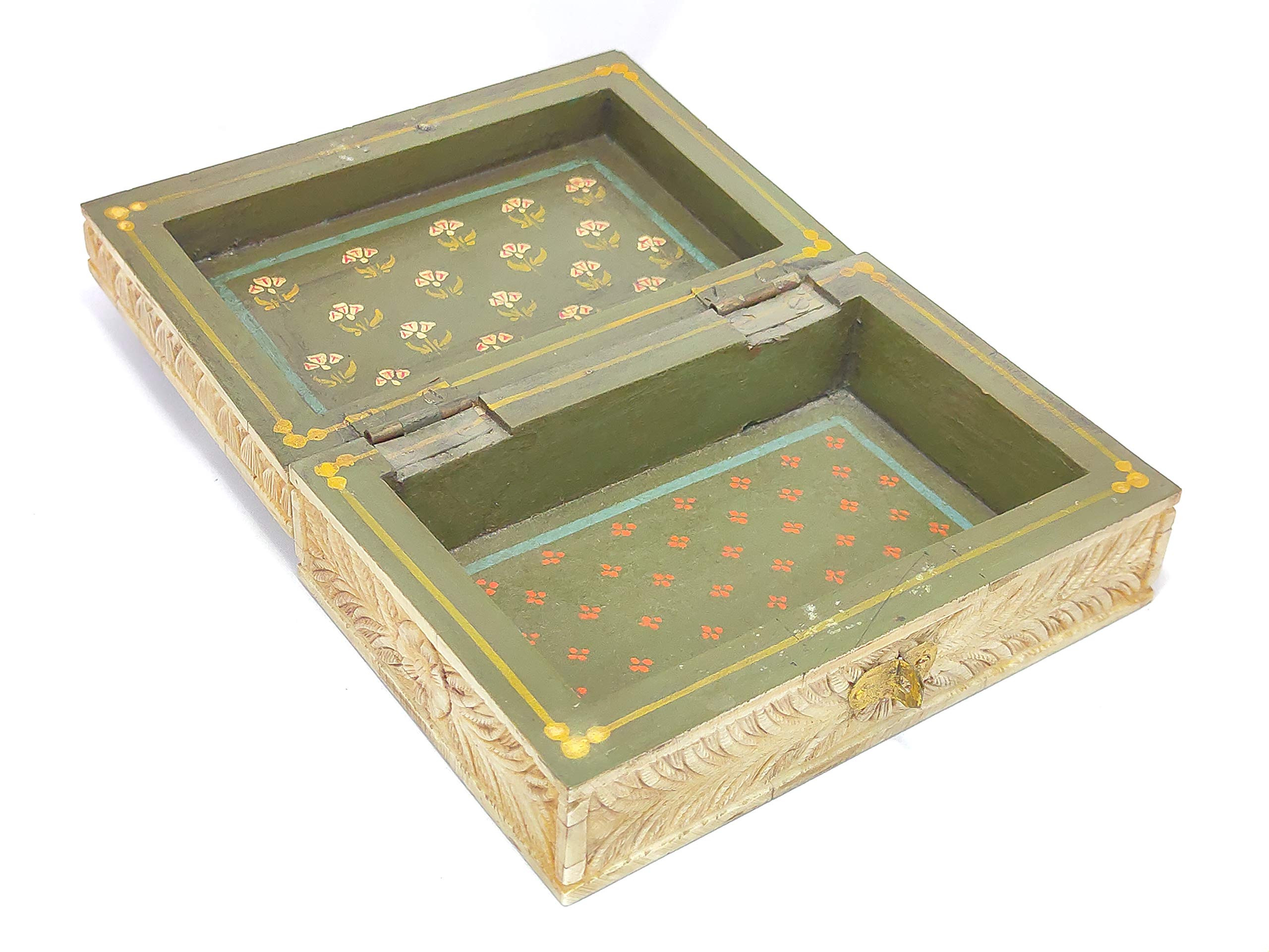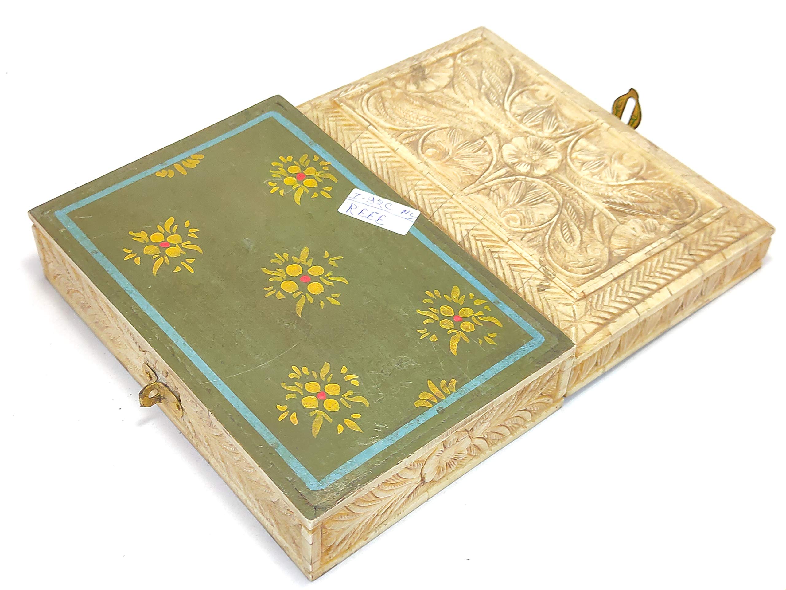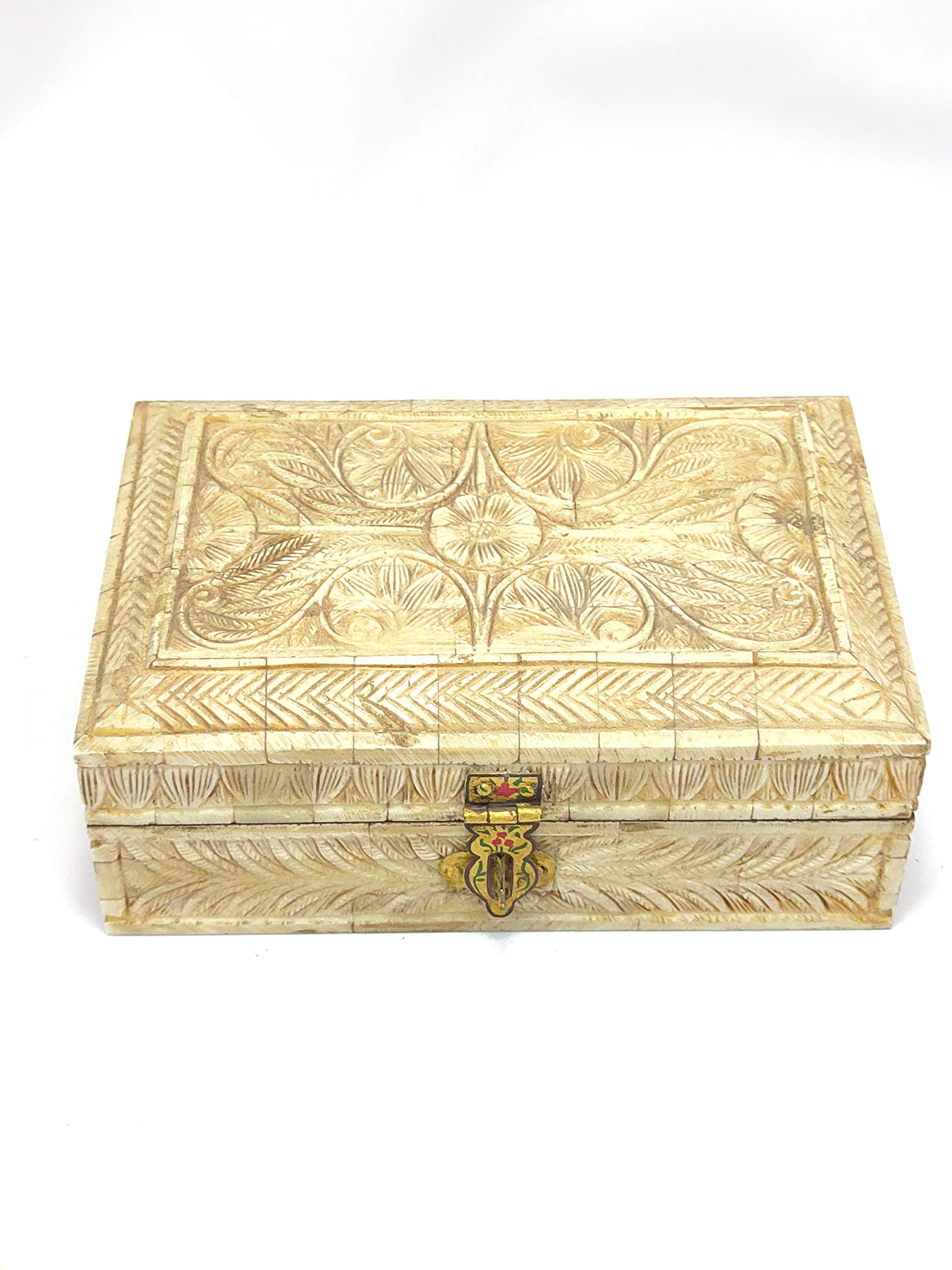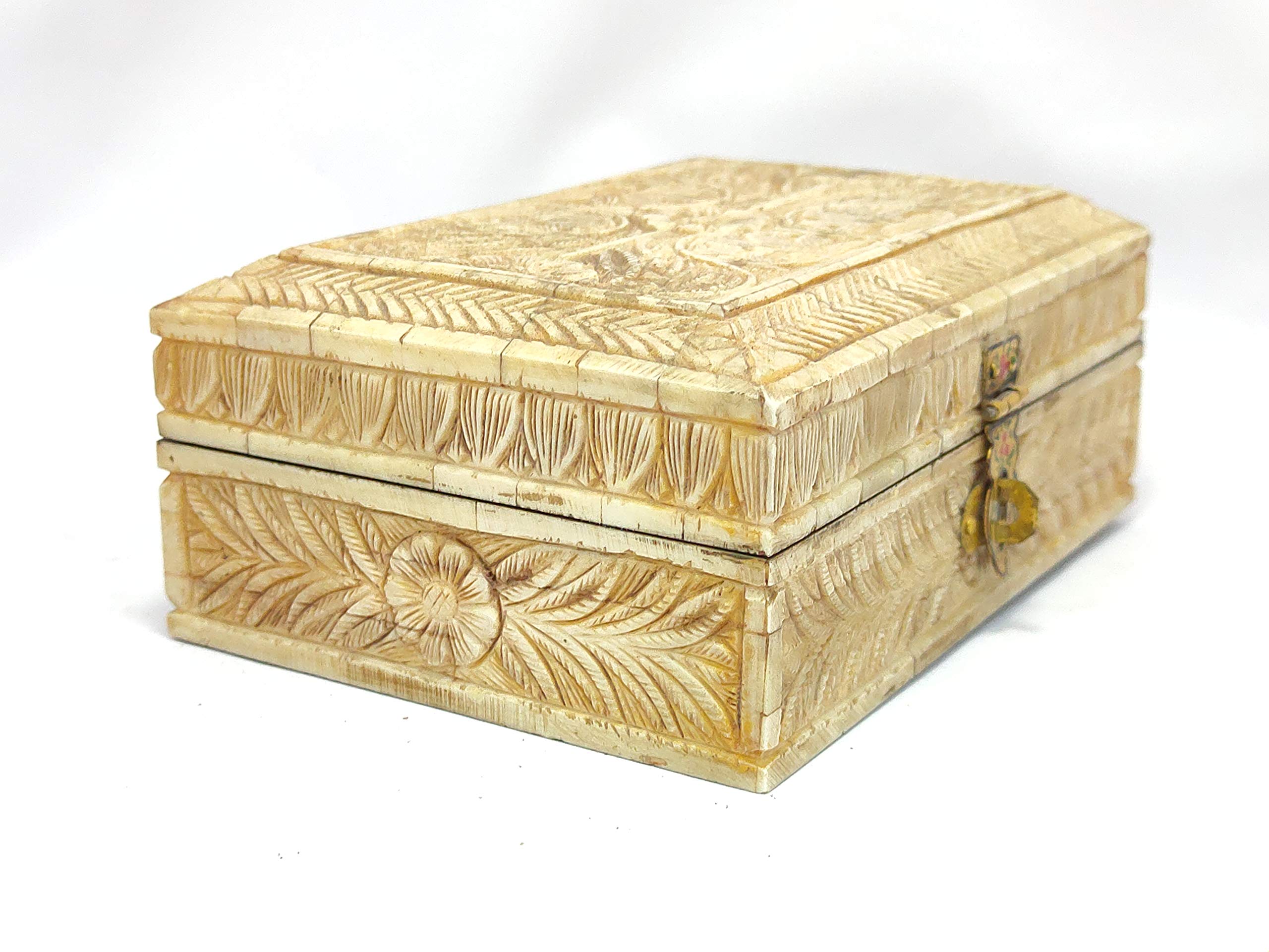 Antique Handcrafted Trinket Box Natural Camel Bone Chips on Wood Hand Engraved A