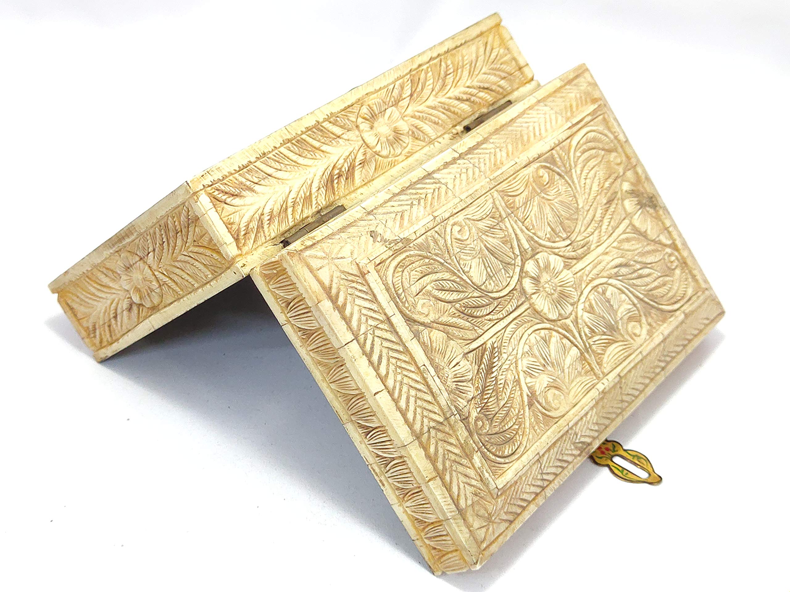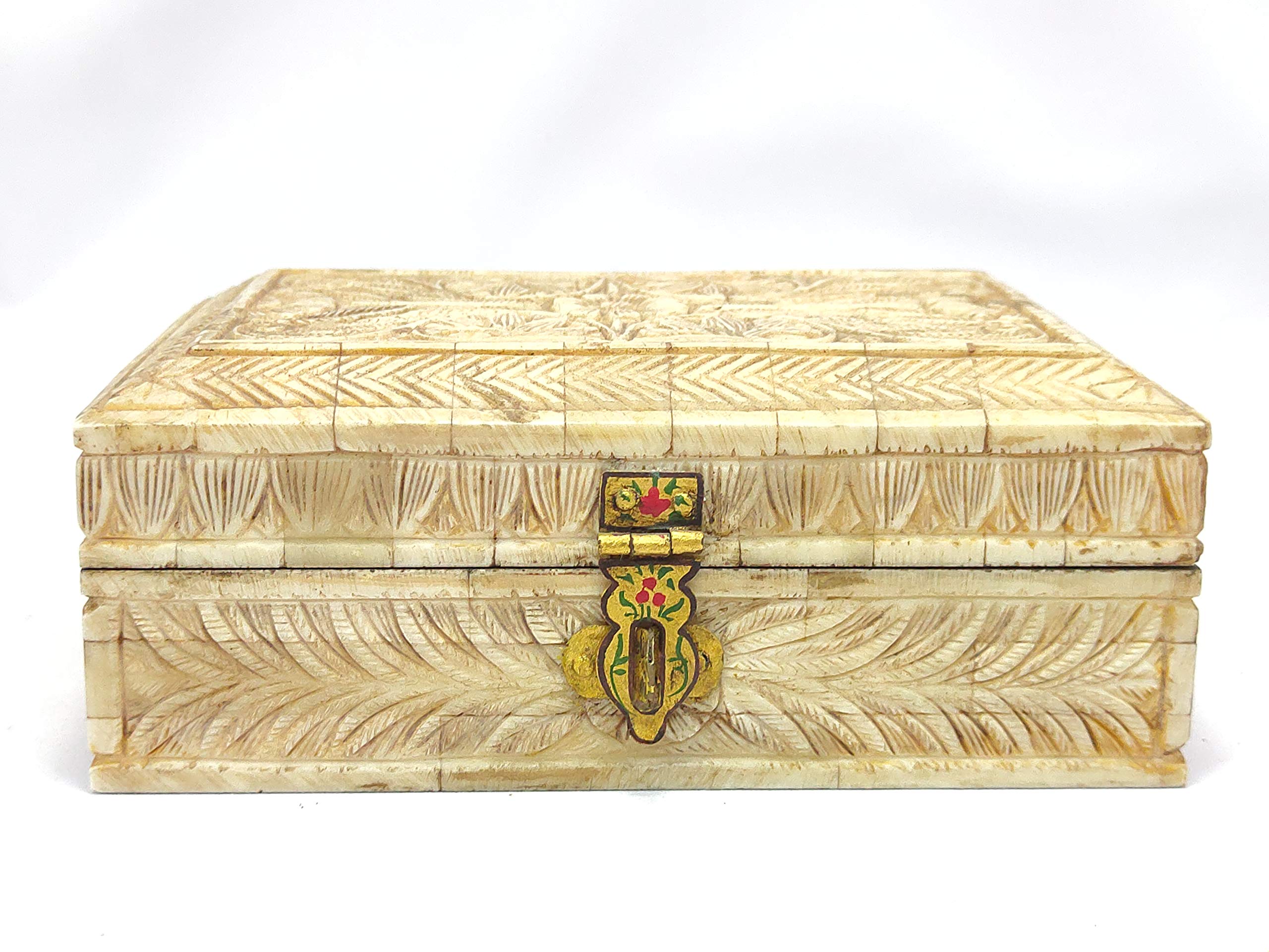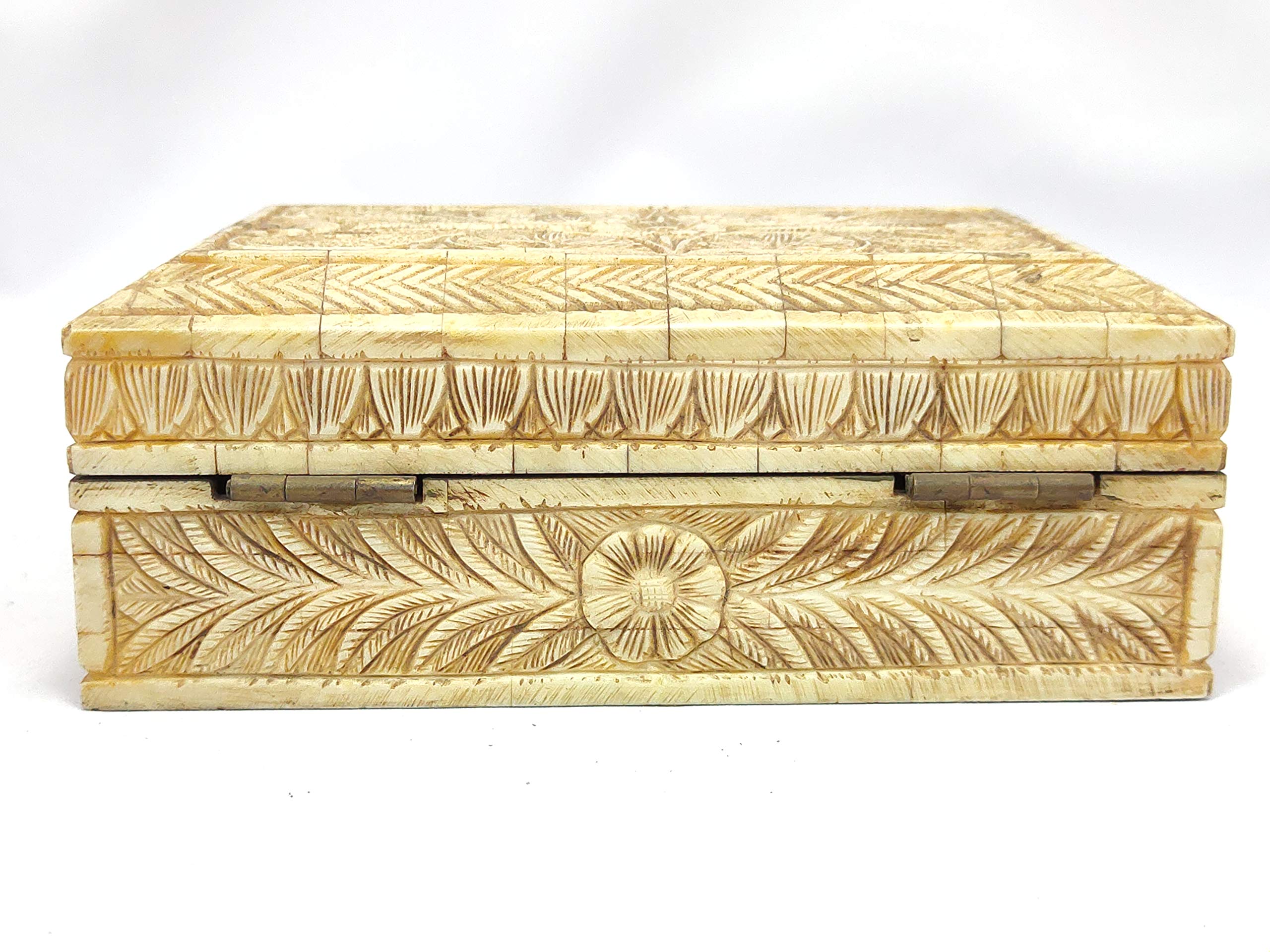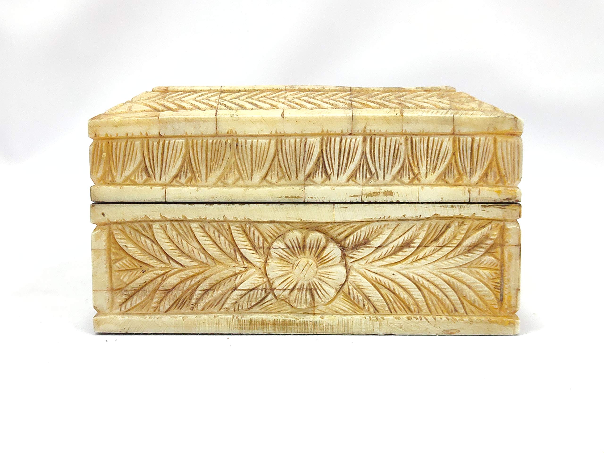 CAMEL BONE ARTICLES Antique Handcrafted Trinket Box Natural Camel Bone Chips on Wood Hand Engraved A