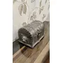 This elegant JEWELLERY CUM DRY FRUIT box made of German Silver and brass cover enhanced with german silver embossing work is a result of meticulous craftsmanship.This unique blend of material craft and art work has lent an appeal that will resonate brilliantly with the festive mood of your near and dear ones on special occasions like diwali. Gift precious articles in our exclusive German silver hand engraved boxes.so your memories are captured in something very exclusive!!