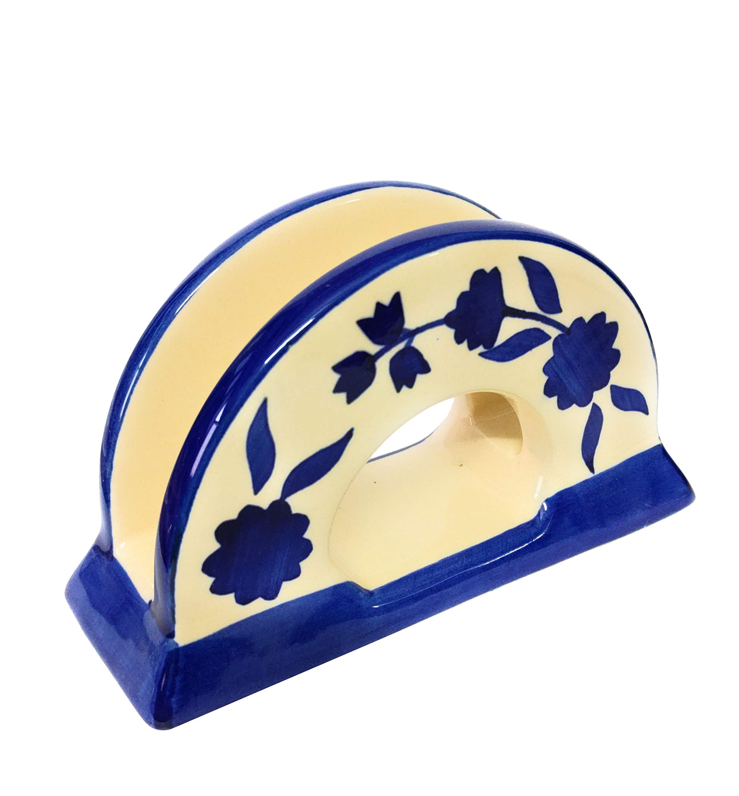 This brilliant pottery Napkin Stand is a must carry for every Kitchen and features a timeless design blending beautiful colours. Lustrous clear glazed pottery is a unique art form whose origins date back to ancient Turkey.