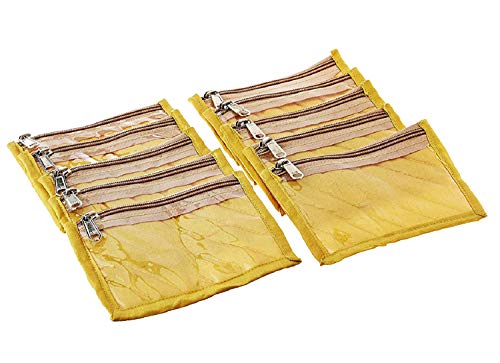 10 Pouches for keeg your Jewellery safe and for best storage comes with one box . It's a best option to use while travelling and it will help you to keep your heavy jewelary in a separate cover from other items in your luggage .Hand made cover from Cotton cloth. Color- Gold .Dimension-26 x 12 x 15 Cm .Long life jewelery kit for organizing your costly and favorite jewelary