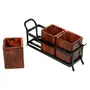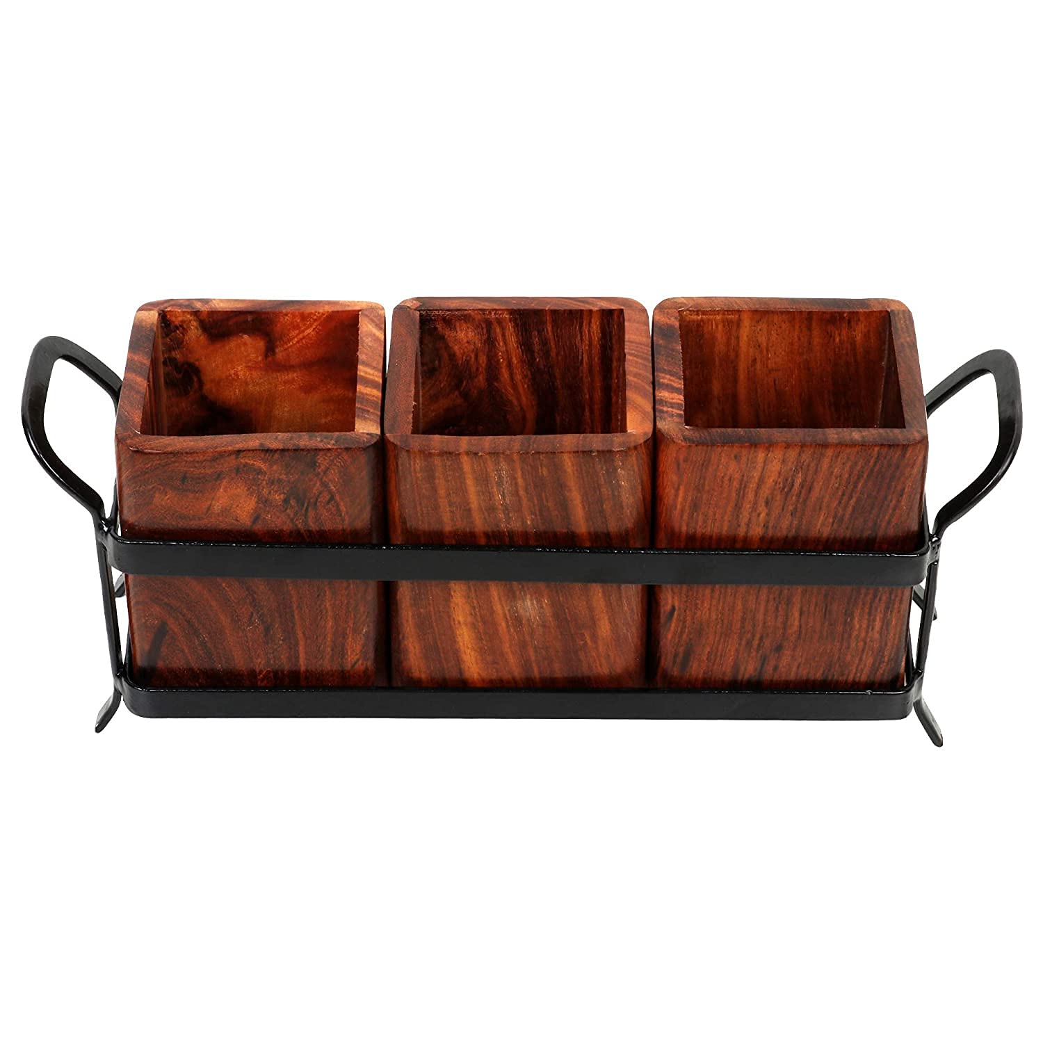 HomeFashionBoxes & HoldersSAHARANPUR HANDICRAFTS Wooden Kitchen & Dining Holder for Dining Table with 3 Wooden Jar & Sheesham Wood One Wrought Iron Stand (Black and Brown)