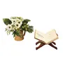 SAHARANPUR HANDICRAFTS's Rosewood Holy Book Stand is a beautifully handcrafted and stylish stand designed to hold and display religious books such as the Quran Bible Gita and other similar books. The stand is carefully crafted from high-quality rosewood with a brown finish that adds a touch of elegance to any room. Measuring approximately 10 inches in height and 7 inches in width this stand is the perfect size to hold any standard-sized religious book. The stand's sturdy design ensures that your holy book will remain in place while reading or displaying while the angled surface makes it easy to read your book comfortably. The intricate carving and attention to detail in the stand's design demonstrate SAHARANPUR HANDICRAFTS's commitment to high-quality and unique artisanal products. This Rosewood Holy Book Stand is not only a practical and functional accessory for any religious reader but also a beautiful decorative piece that adds a touch of traditional elegance to your home or office. Whether you're looking for a stylish and practical stand for your own religious book or searching for a thoughtful gift for someone special SAHARANPUR HANDICRAFTS's Rosewood Holy Book Stand is an excellent choice that is sure to be cherished for years to come.