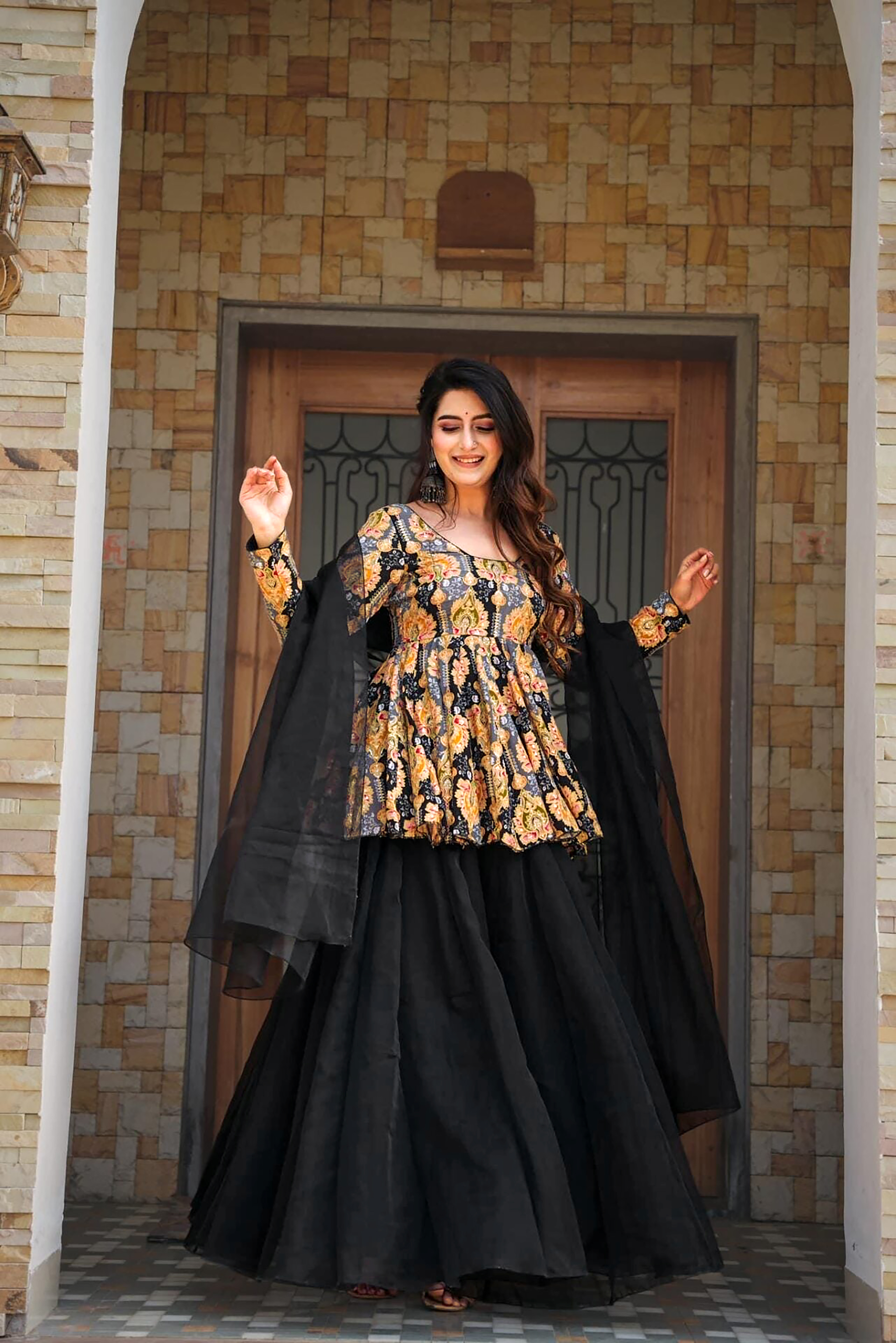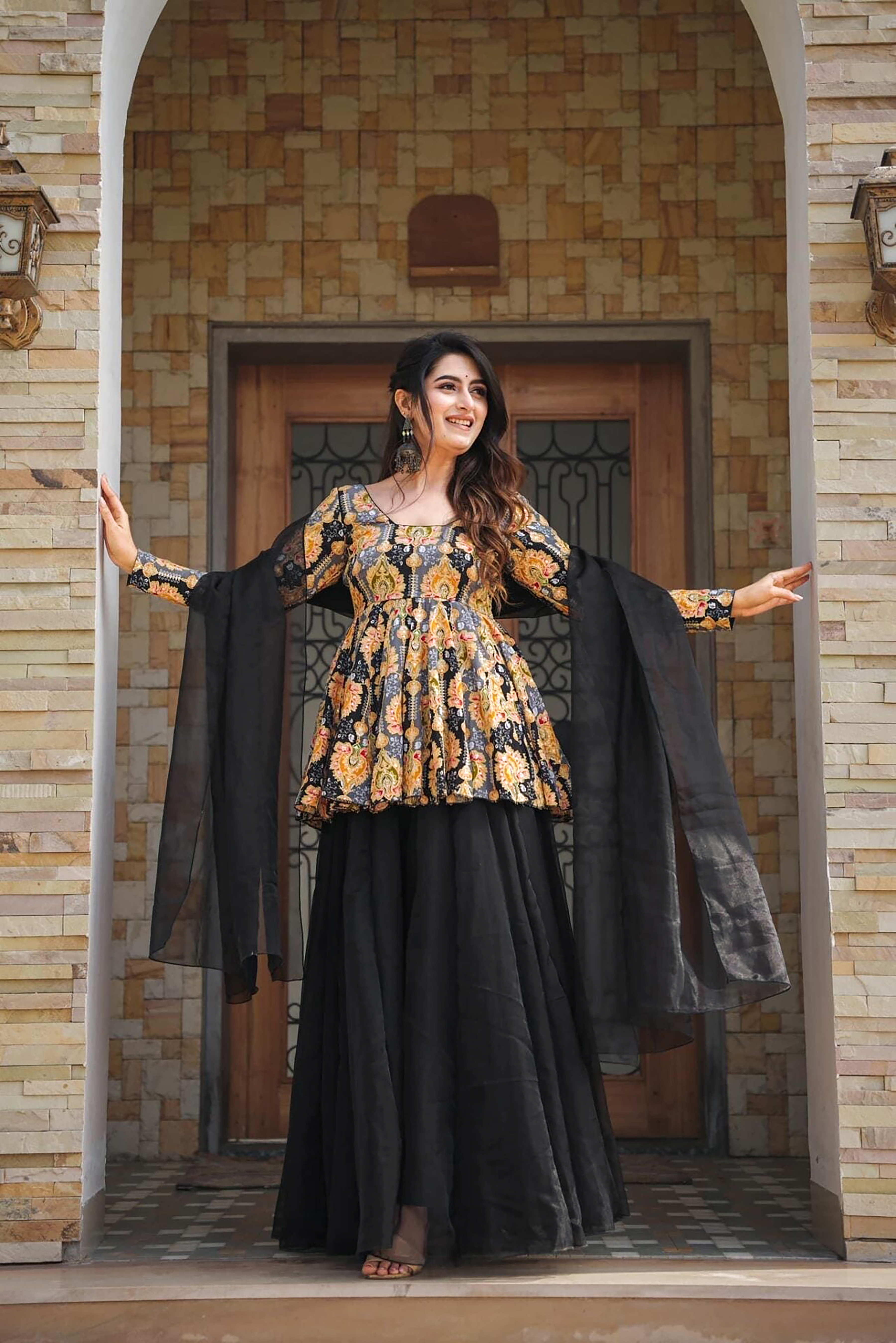• Curated collection of women’s readymade sharara sets designed for ethnic wear