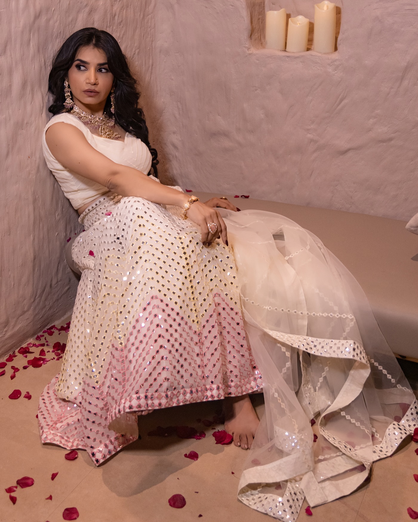 LEHENGA(BOTTOM)FABRIC: - FAUX GEORGETTEINNER: - MICROWORK: - THREAD WITH PAPER MIRROR EMBROIDERY WORKSTITCH: - SEMI STITCHED (WITH CANCAN AND CANVAS)SIZE: - 42HEIGHT AND 42WAISTFLAIR: - 3.00 METER FLAIRCOLOR: - CREAM CHOLI(TOP)FABRIC: - FAUX GEORGETTESIZE: - 0.80 METER FABRICWORK: - THREAD EMBROIDERY WORKSTITCH: - UNSTITCHED FABRICCOLOR: - CREAM EMBROIDERY WORK SIZE: - FRONT HEIGHT-13.50 WIDTH-21, , , BACK HEIGHT-13.50 WIDTH-21, , , SLEEVES HEIGHT-5.50 WIDTH-13.50DUPATTAFABRIC: - NETWORK: - 3MM WITH THREAD EMBROIDERY WORKSIZE: - 2.25 METER DUPATTASTITCH: - FULL STITCHEDCOLOR: - CREAMADDITIONALWASH CARE: - DRY CLEAN ONLYCOLOR: - PRODUCT COLOR MAY SLIGHTLY VARY DUE TO PHOTOGRAPHIC LIGHTNING SOURCES OR YOUR DEVICE DISPLAY SETTINGSTHESE ARE MADE TO ORDER DESIGNER STYLES, HENCE EXPECT A SLIGHT VARIATION FROM THE IMAGE DISPLAYED.